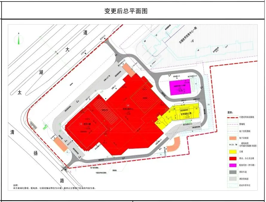 无锡世贸中心位于梁溪区清名桥街道,旁边就是太湖广场。项目在2006年开工,一期于2009年交付使用,二期位于清扬路东侧、太湖大道南侧,原计划在2012年建成,但从2015年起处于停工状态。