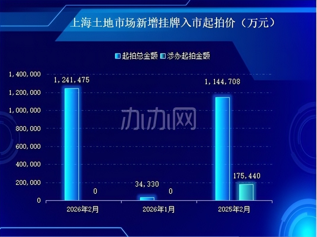 2026年2月上海土地挂牌市场呈现总量环比回升、同比回落、起拍总价走高、用地结构向居住倾斜的趋势:当月供应以优质宅地为绝对主力,核心区地块拉高整体地价,总起拍金额同比小幅上涨;而涉办用地继续零供应,商办新增挂牌处于空窗状态,整体供地延续“保住宅、控商办”导向,短期利好存量办公物业去化与市场稳定。