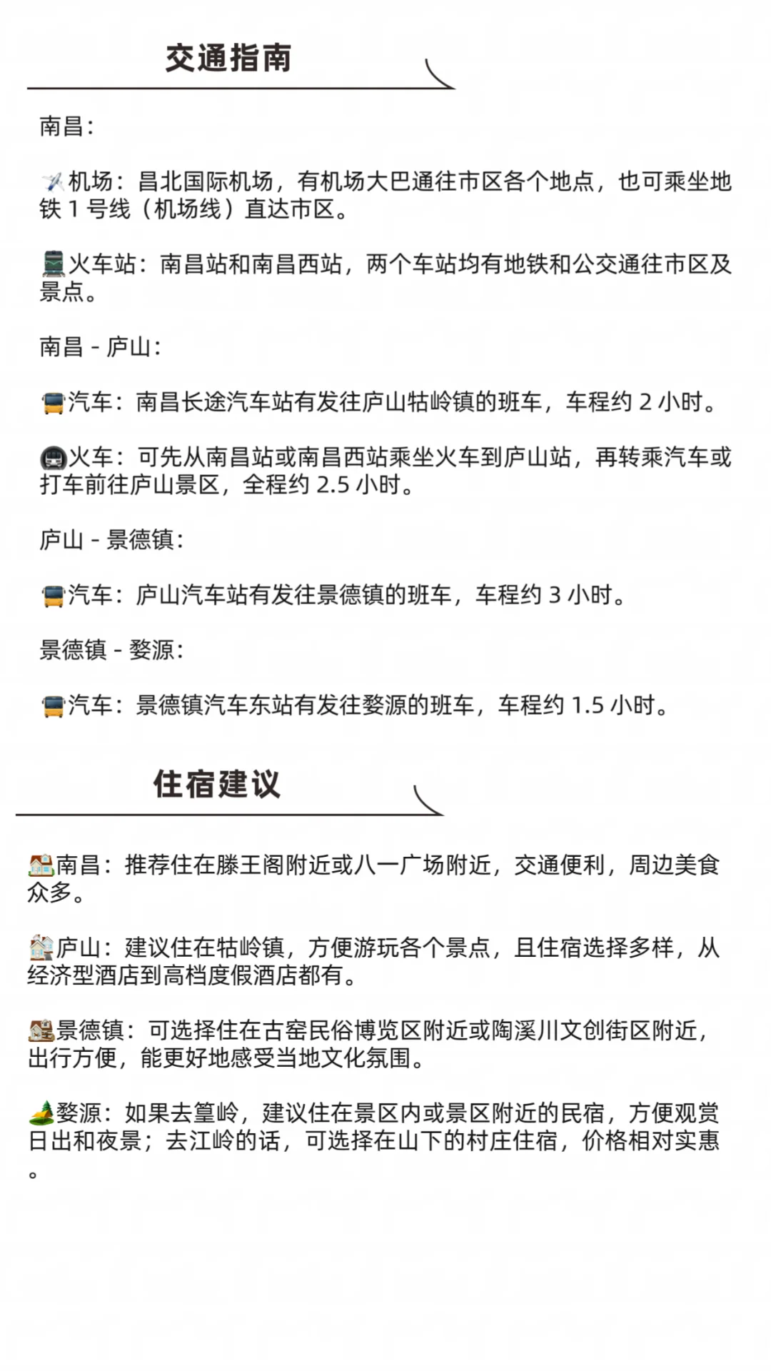 江西 这片拥有丰富自然景观和深厚文化底蕴的土地 美不胜收 以上👆为您推荐一条 江西旅游路线 带您领略赣鄱大地的 春日盛景 🌟沿着这条线路 感受江西的自然风光历史文化和美食魅力 相信你一定会拥有一段难忘的旅程!