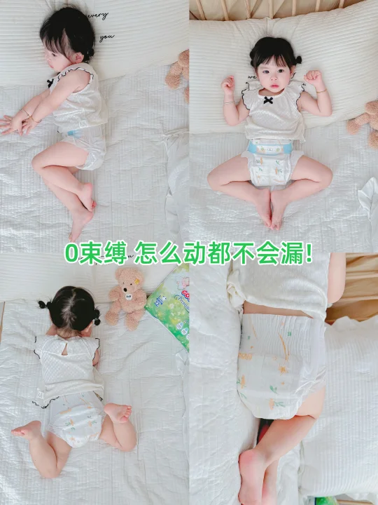 新升级的0.2CM瞬吸芯体,轻薄又能吸,穿在身上跟没穿似的,孩子爬来爬去也舒服,一点不闷。