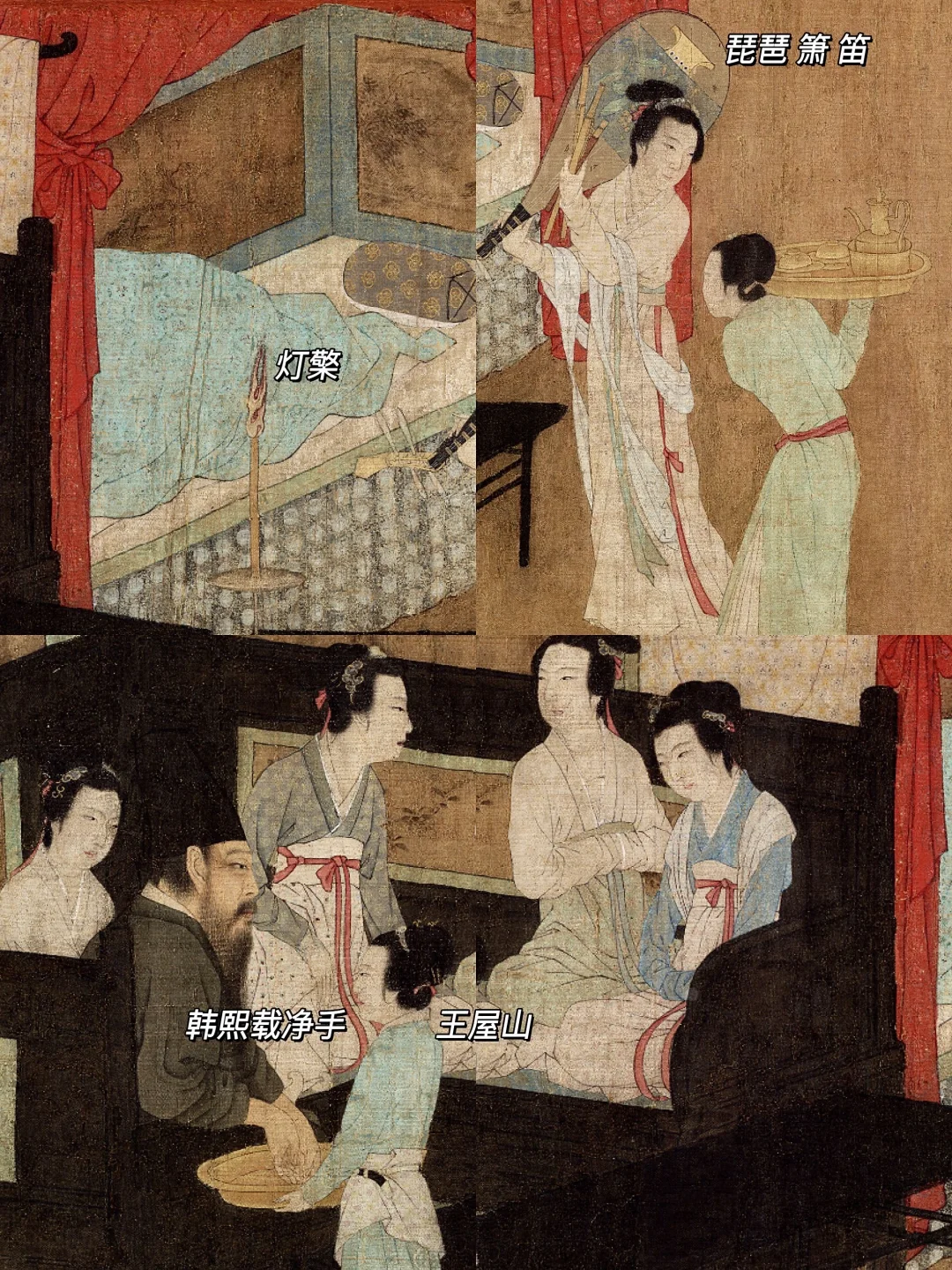 可无论如何,他都逃不掉李煜的关注,于是,《韩熙载夜宴图》便在君王授意,画家顾闳中偷偷观察下,诞生出来。
