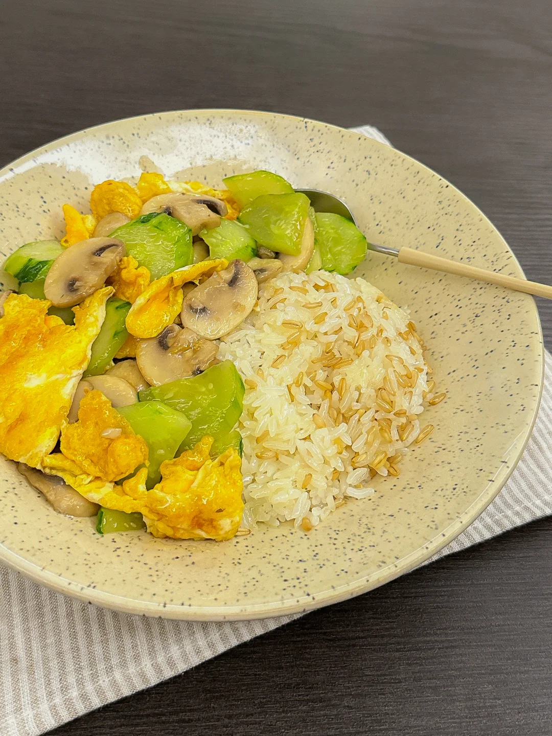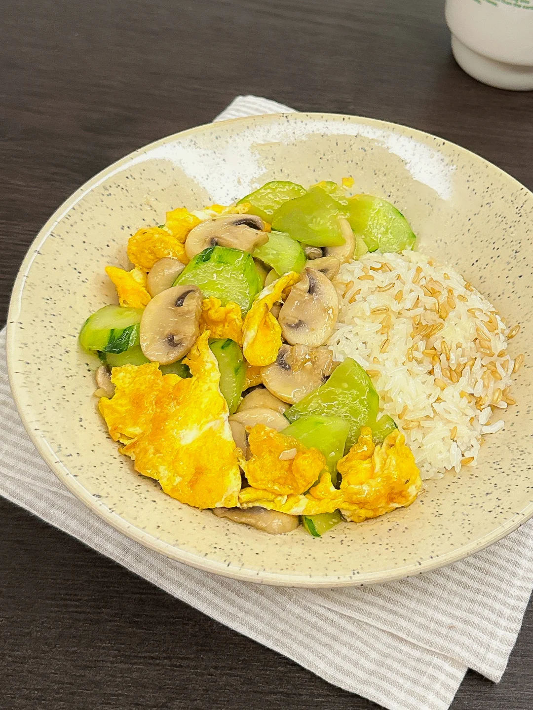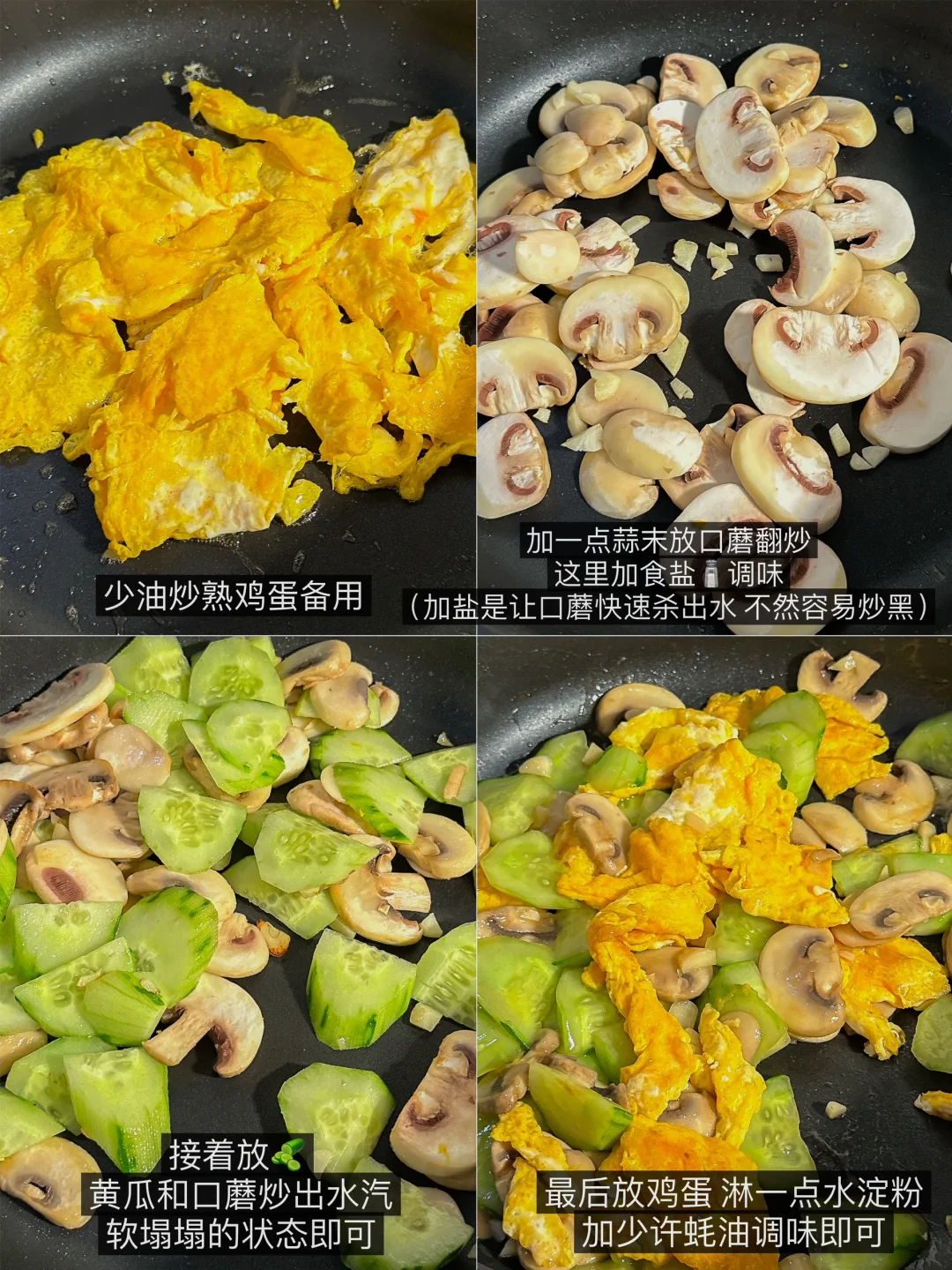 口蘑一定要趁新鲜吃;跟黄瓜🥒鸡蛋炒在一起口感鲜美嫩滑;黄瓜清脆丝丝的甘甜~好适合中国胃,做起来没啥难度!跟米饭一起拌着吃,好味又低卡一口满足!大家一定要去做!