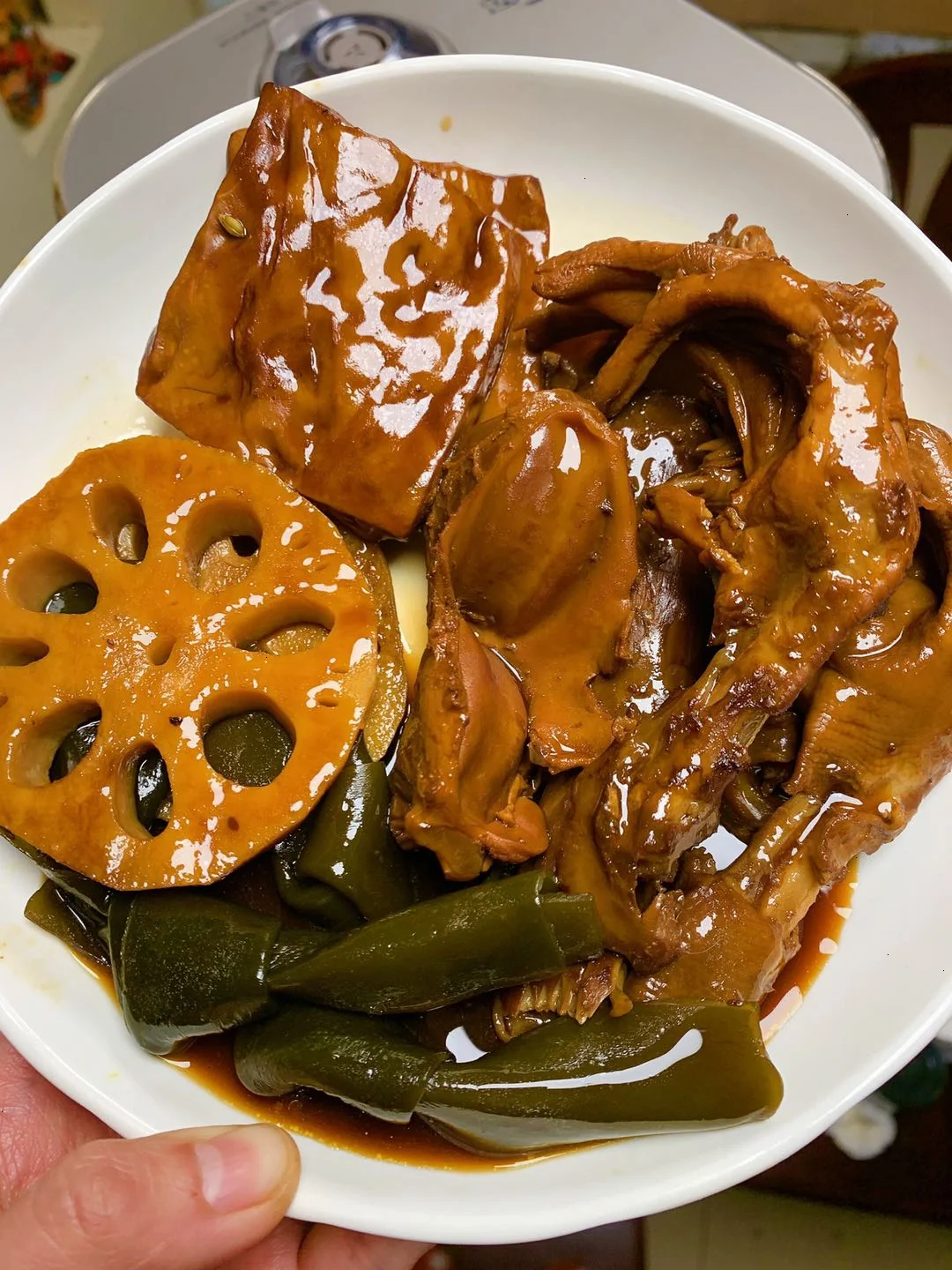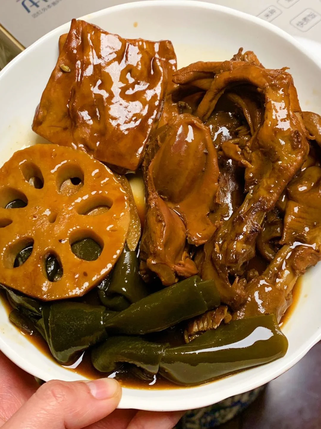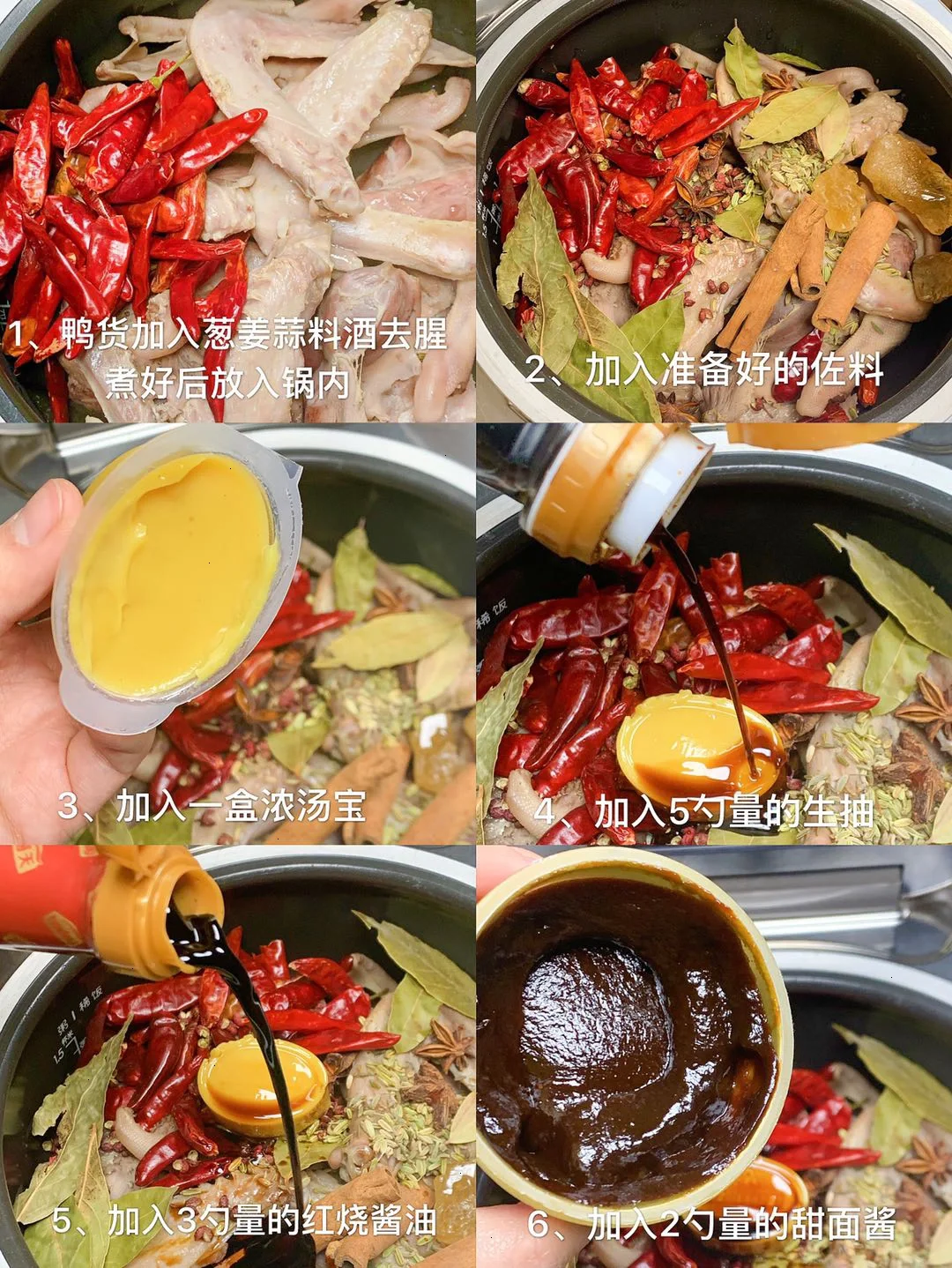 鸭脖、鸭掌、海带结、藕片、鸭翅、鸭胗(喜欢吃啥就放啥!)