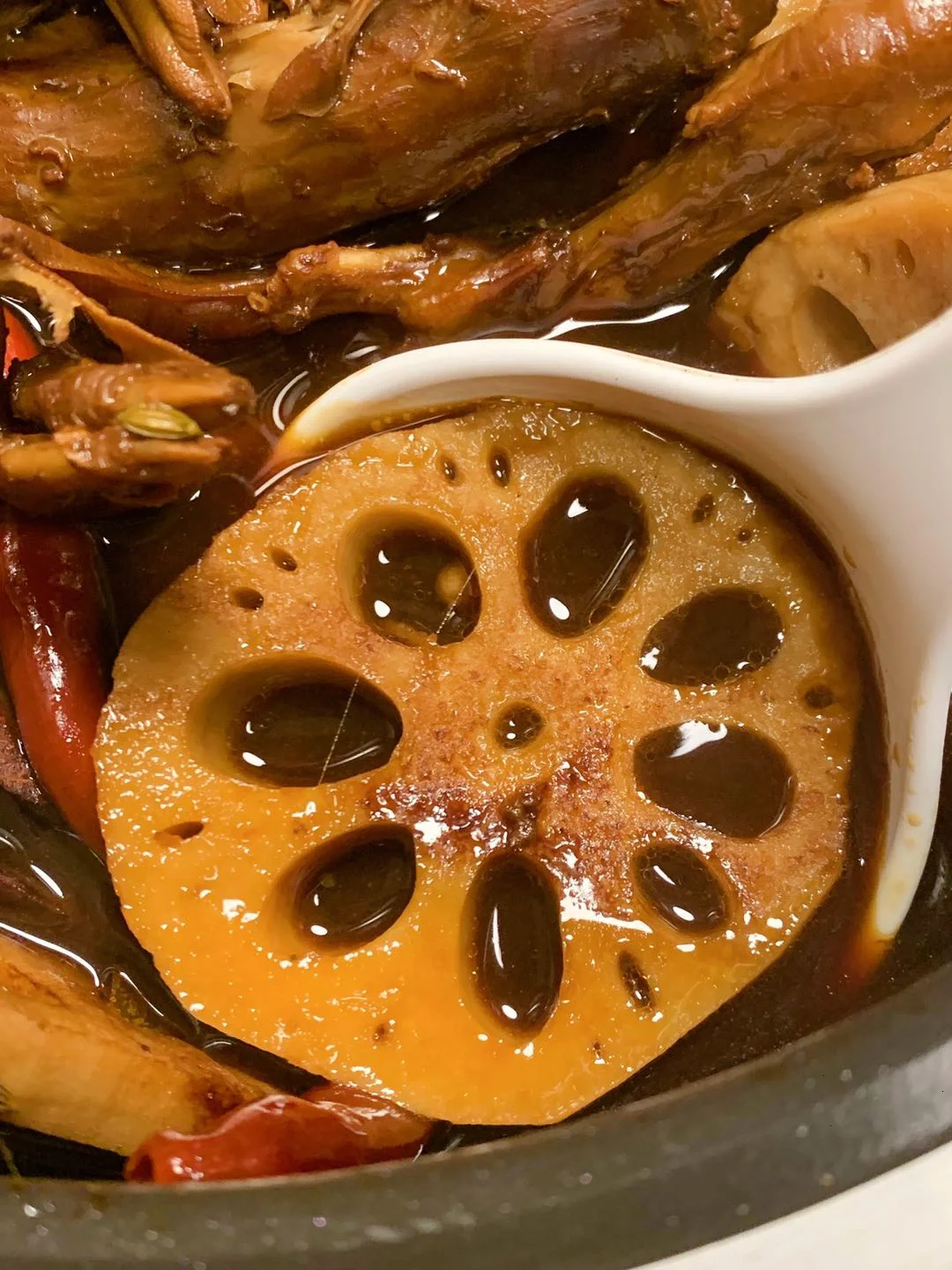 佐料:5勺老抽+3勺红烧酱油+3块冰糖+浓汤宝1个+甜面酱2勺+半勺盐+干辣椒+小茴香+香叶+八角+花椒