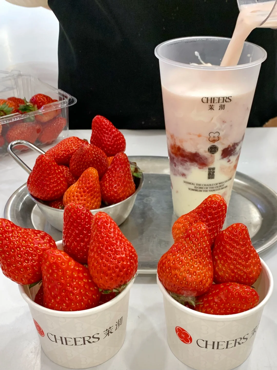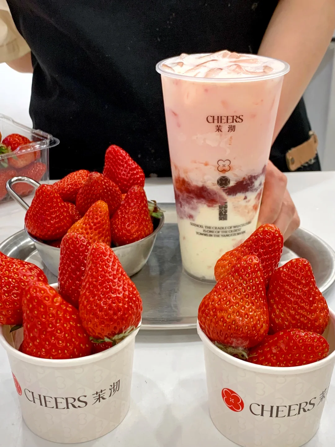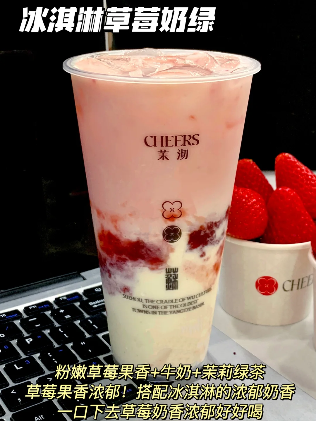 粉嫩草莓果香+牛奶+茉莉绿茶