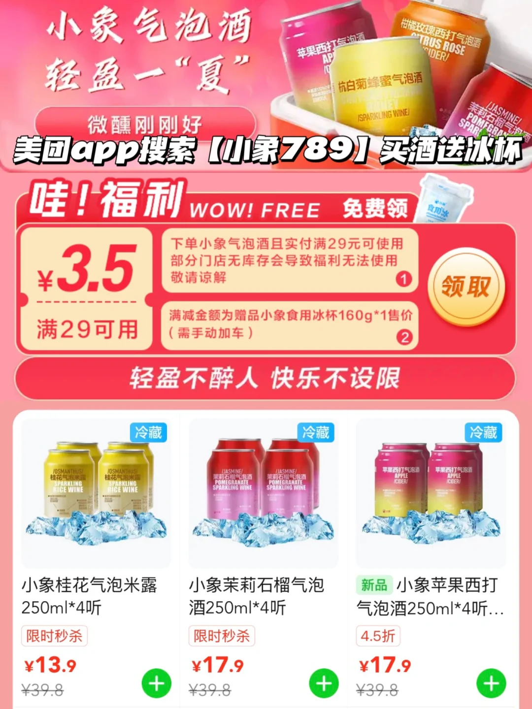 上美团app搜索【小象789】买小象气泡酒送冰杯哦!