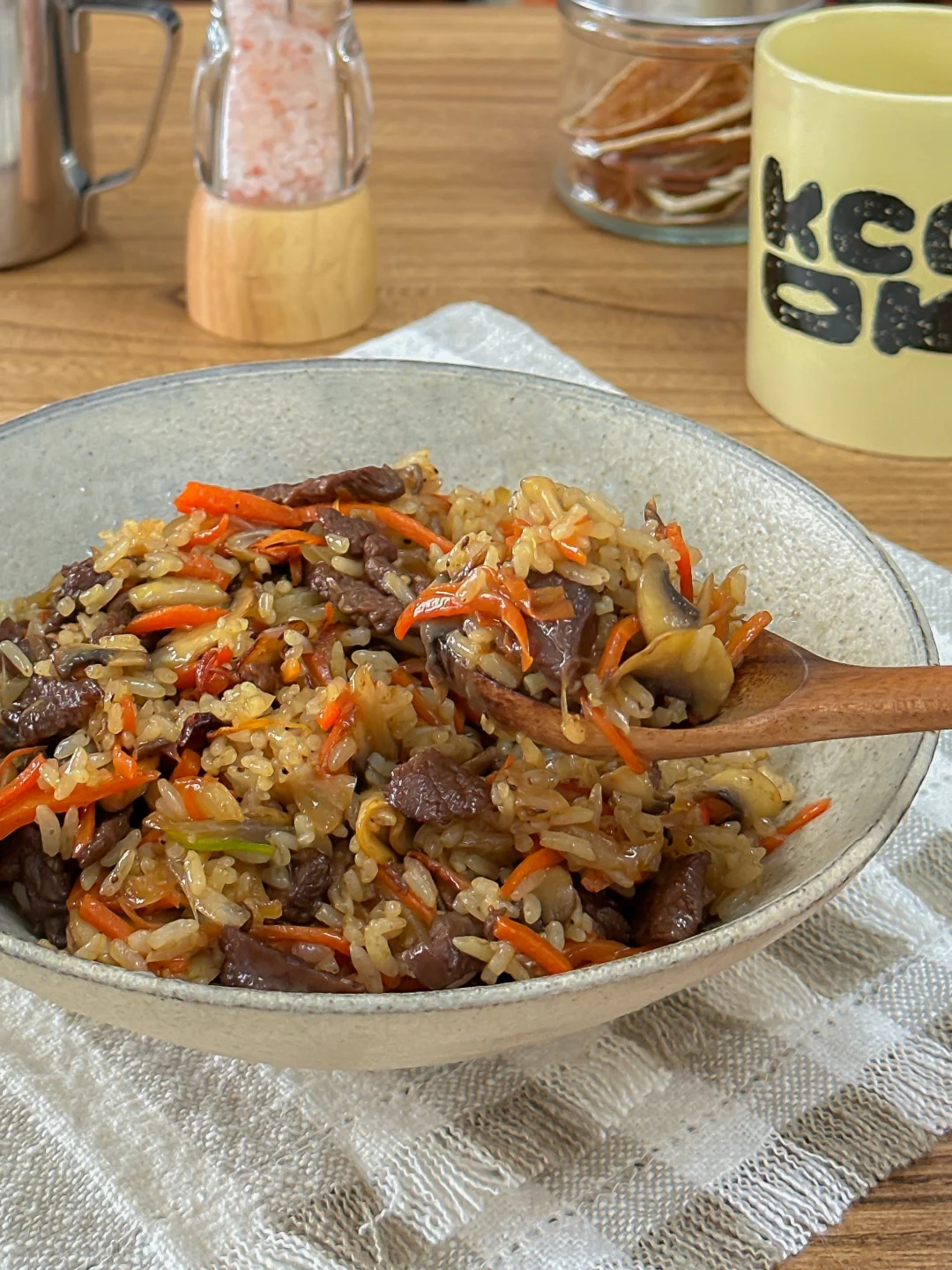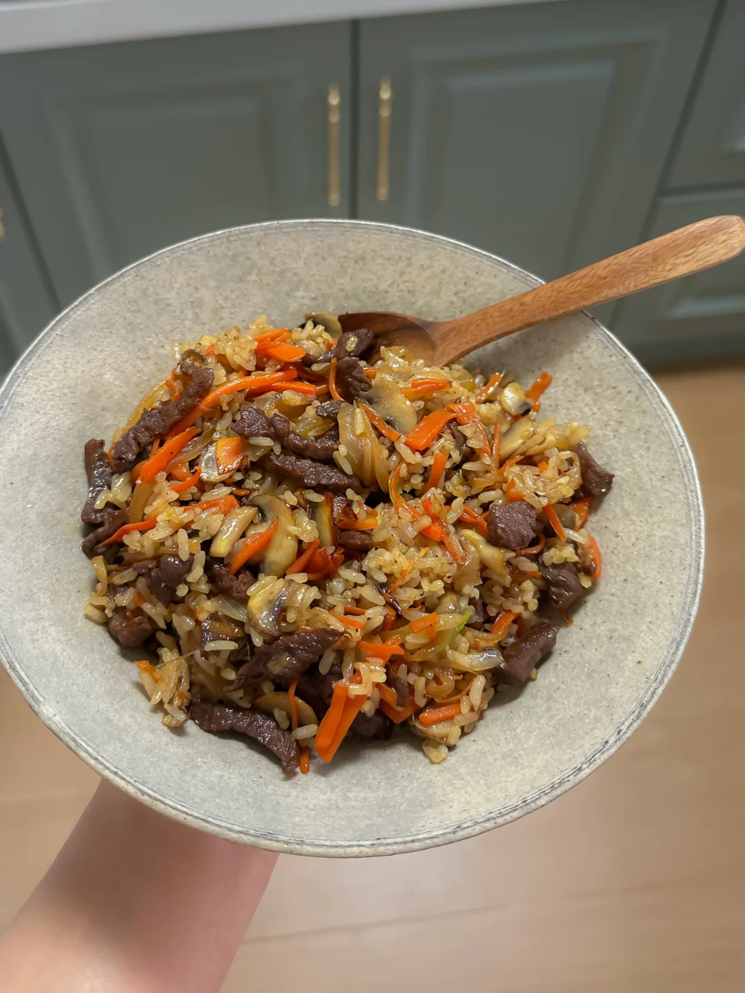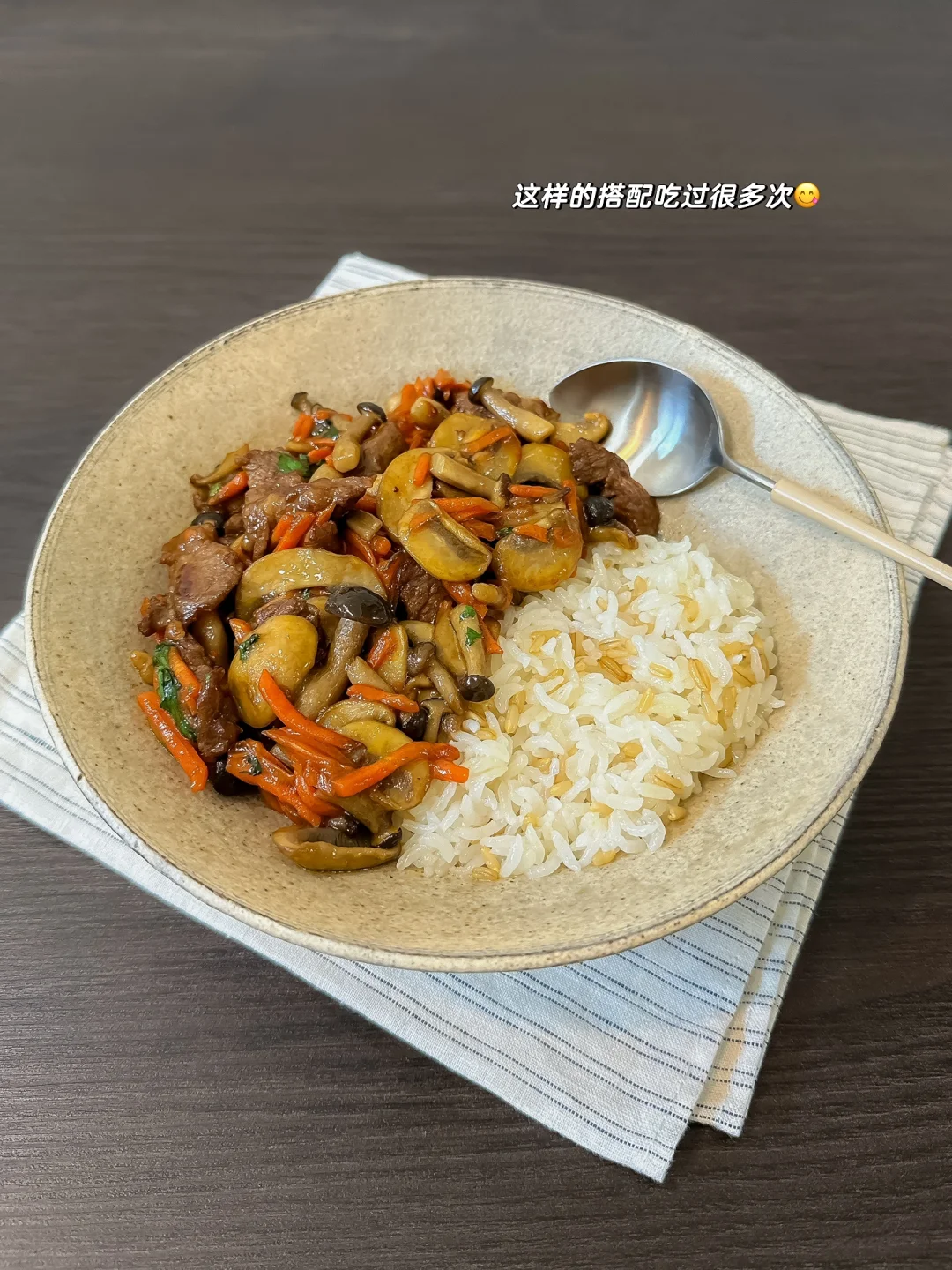 今日减脂食谱 胡萝卜口蘑牛肉饭🍚