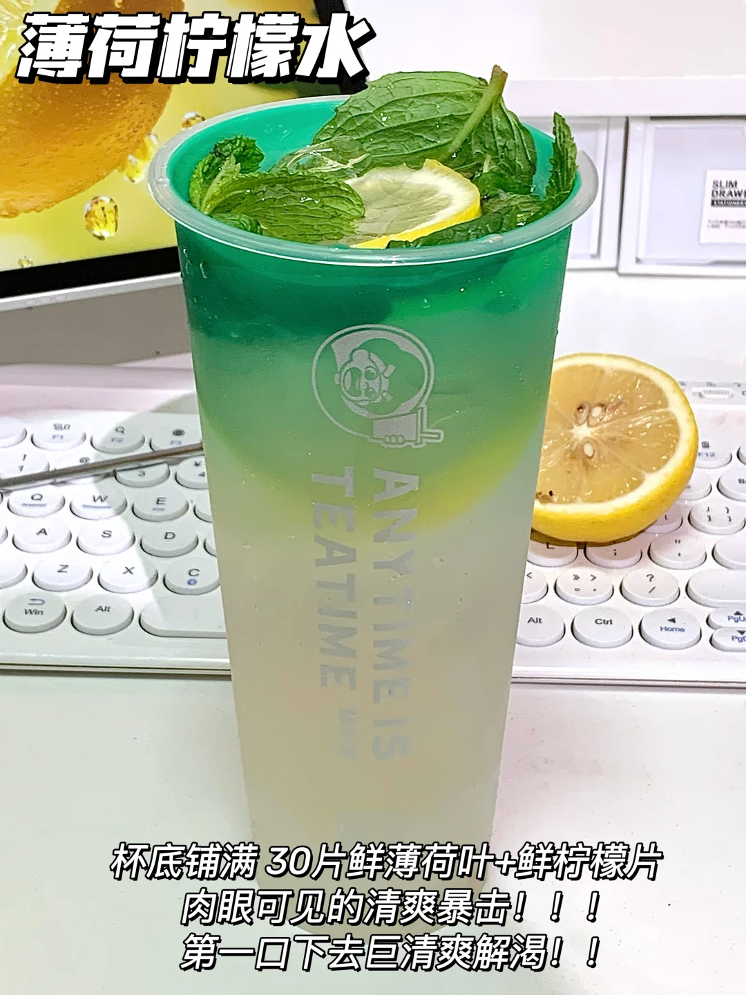 杯底铺满 30片鲜薄荷叶+鲜柠檬片