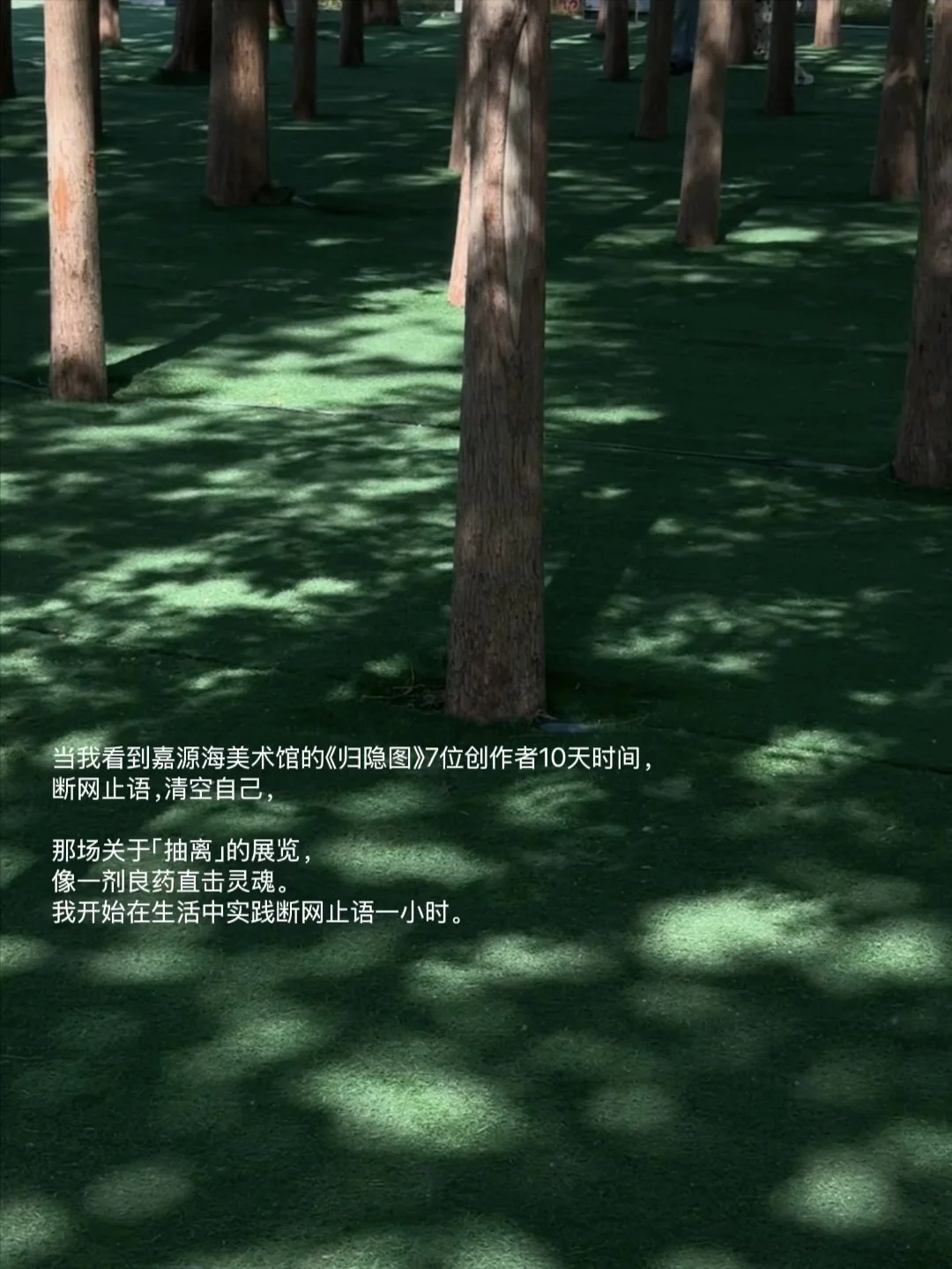不想把美好的清晨浪费在碎片化阅读上,更不愿让浮躁的社论白白糟蹋了心灵。当我看到嘉源海美术馆的《归隐图》7位创作者10天时间,断网止语,清空自己,那场关于「抽离」的展览,像一剂良药直击灵魂。我开始在生活中实践断网止语一小时。