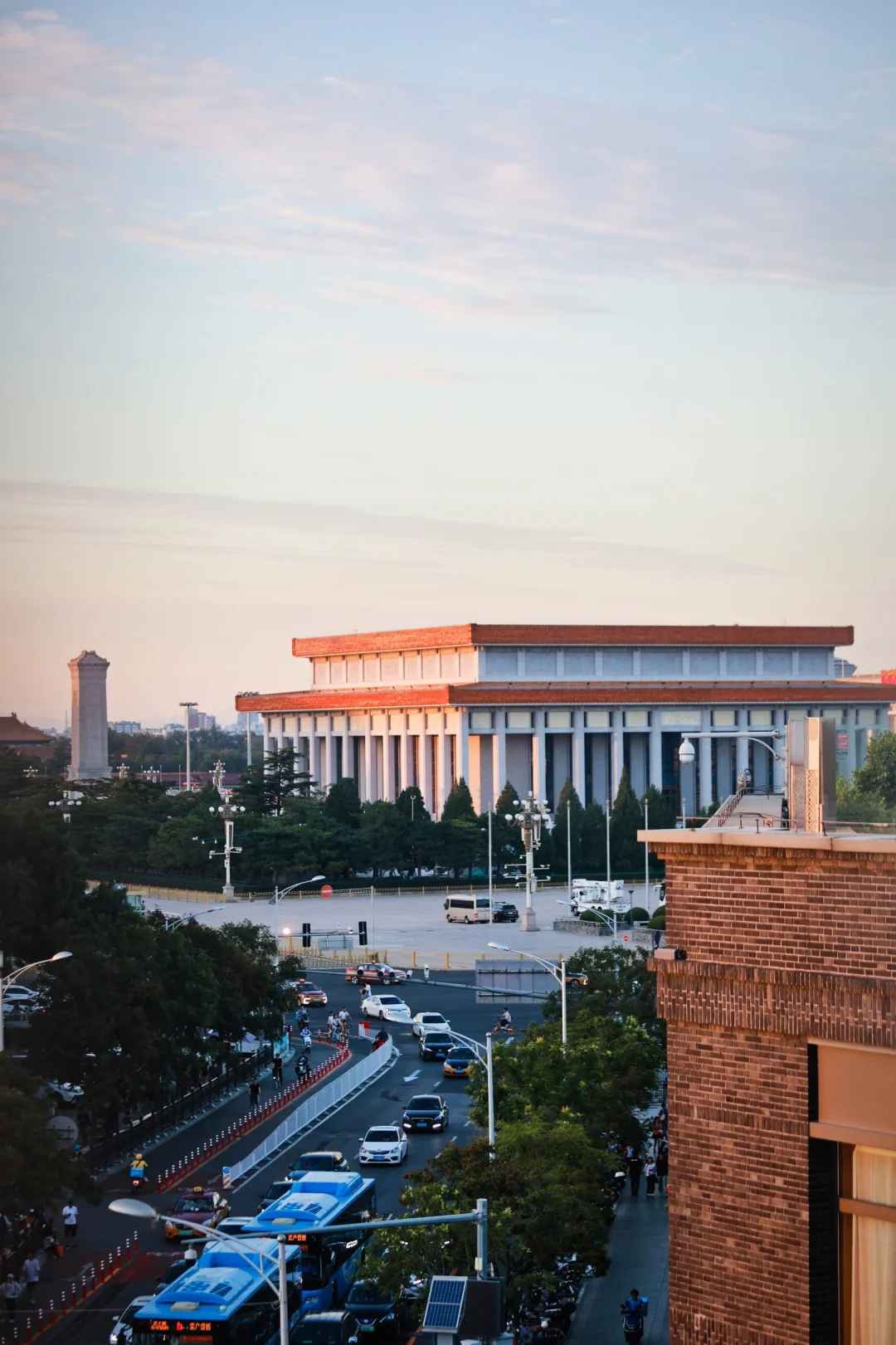 位置②:MujiHotel4楼,不点餐也可以去露台,人略多,可以看到正阳门、纪念碑、天安门,视野更好!