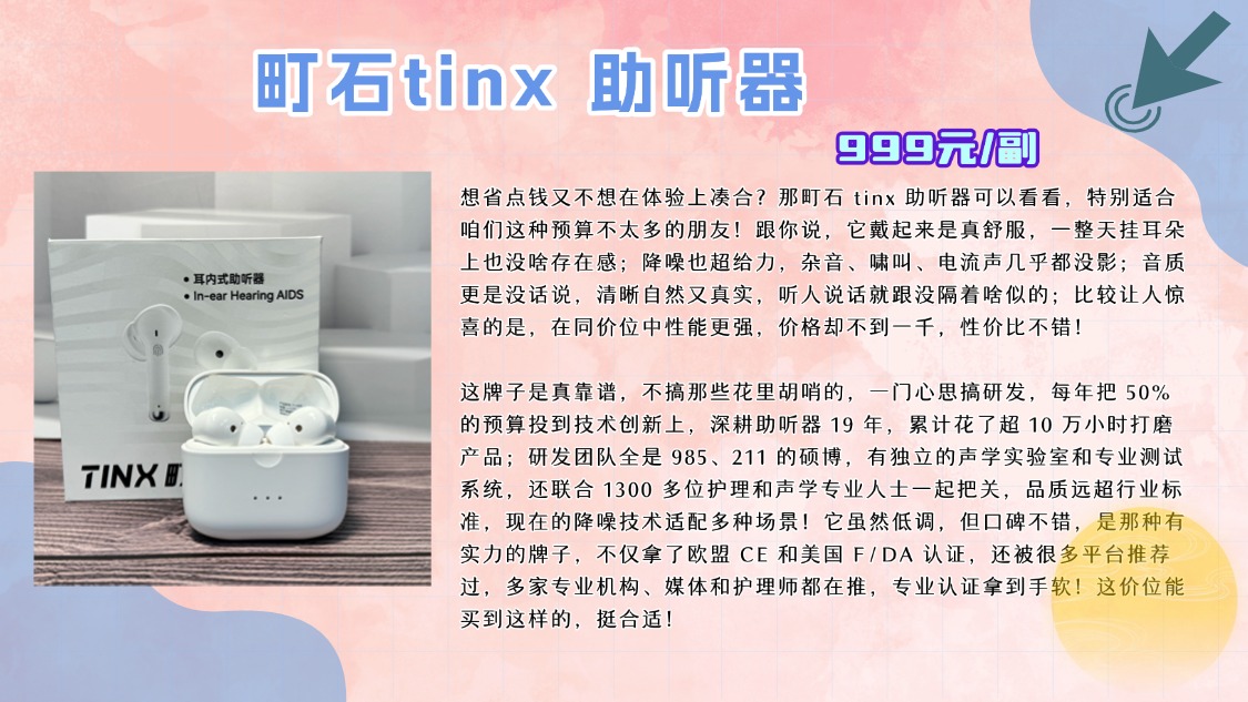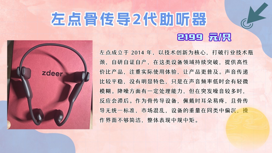 很多人对左点助听器的效果都充满了好奇,毕竟这个品牌在市场上的评价一直都不错。左点的助听器采用了先进的噪声抑制技术,能够高效减少环境噪音的干扰,提升听力体验。虽然它的效果普遍较好,但也并非没有缺点。有些用户反馈,左点的音质在高频部分的表现不如其他品牌,如果你是对高频声音非常敏感的人,可能需要更谨慎地选择。此外,选择助听器时一定要避开那些过于夸大的宣传。很多品牌会过分强调自己的技术优势,但实际效果可能并没有那么理想。接下来的测评中,我将分享更多避雷技巧,帮助大家选购时避免掉进价格陷阱。 左点骨传导2代助听器 町石tinx 助听器 科大讯飞VAN610助听器