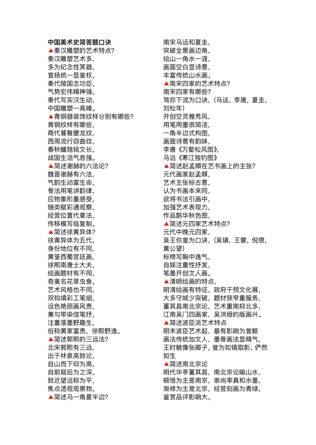 干货来啦~~中美史的完整版全在这啦,背诵的过程中多看一看口诀辅助记忆,但没必要硬记下来,对于客观题是非常有用的哈,主观题可以用来记忆对应的作品之类,总之灵活运用哈