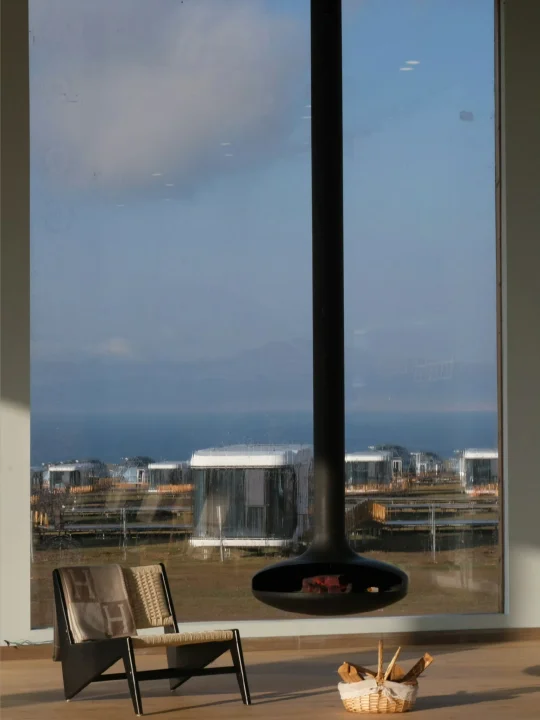 再说说房间,潮克分别是观景星空房和房车房2个房型,星空房观湖视野更好,都在前排,尤其是最外边的一排星空房,而且还可以躺着看星空,房间的空间面积挺大的,房车和星空都是38平左右。房车房虽然不和星空房在一起,但是景色也不错,因为两边的大落地窗,可以很清晰的看草地和背后的雪山。