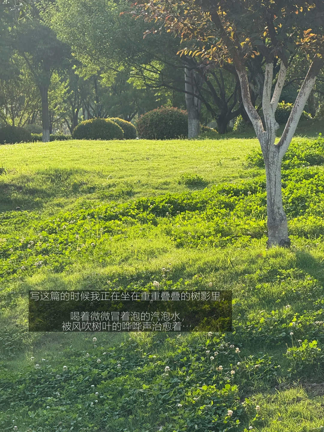 写这篇的时候我正在坐在重重叠叠的树影里,喝着微微冒着泡的汽泡水,被风吹树叶的哗哗声治愈着…
