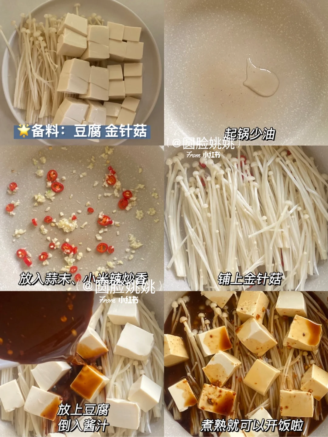 材料:豆腐 金针菇 小米辣 蒜末