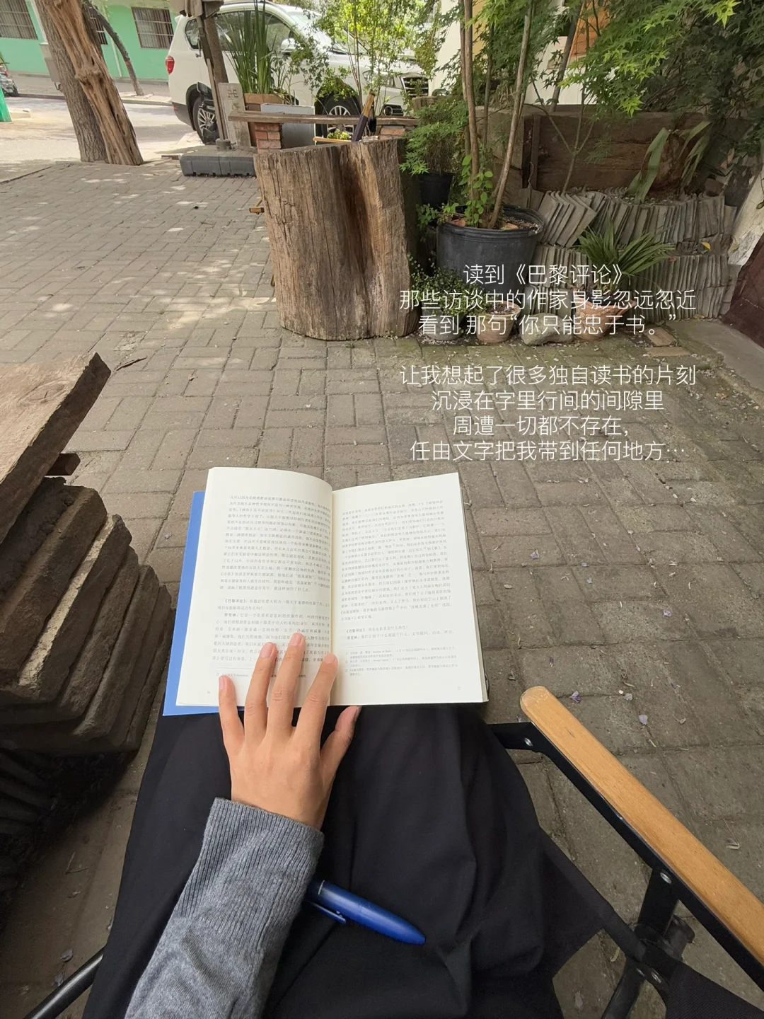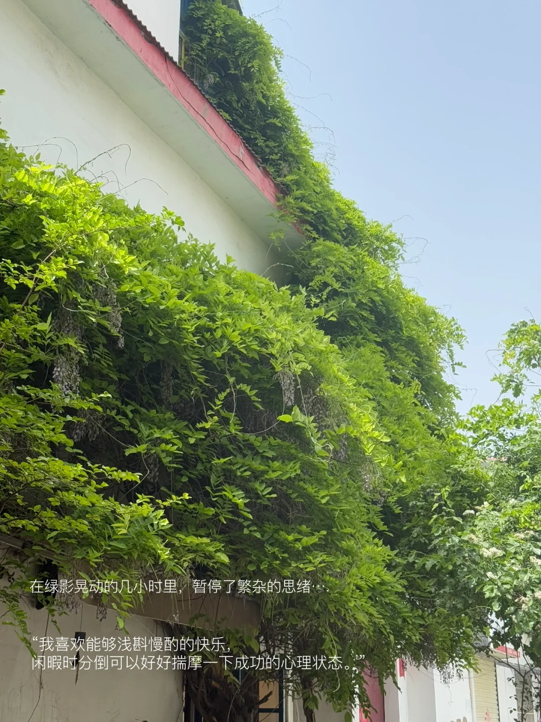阳光、旧木桌、冰咖啡、风涌起的书页、掉落在脚旁的紫色小花,我待在一个人的空间里,自由自在的感知身边的一切。在绿影晃动的几小时里,暂停了繁杂的思绪…