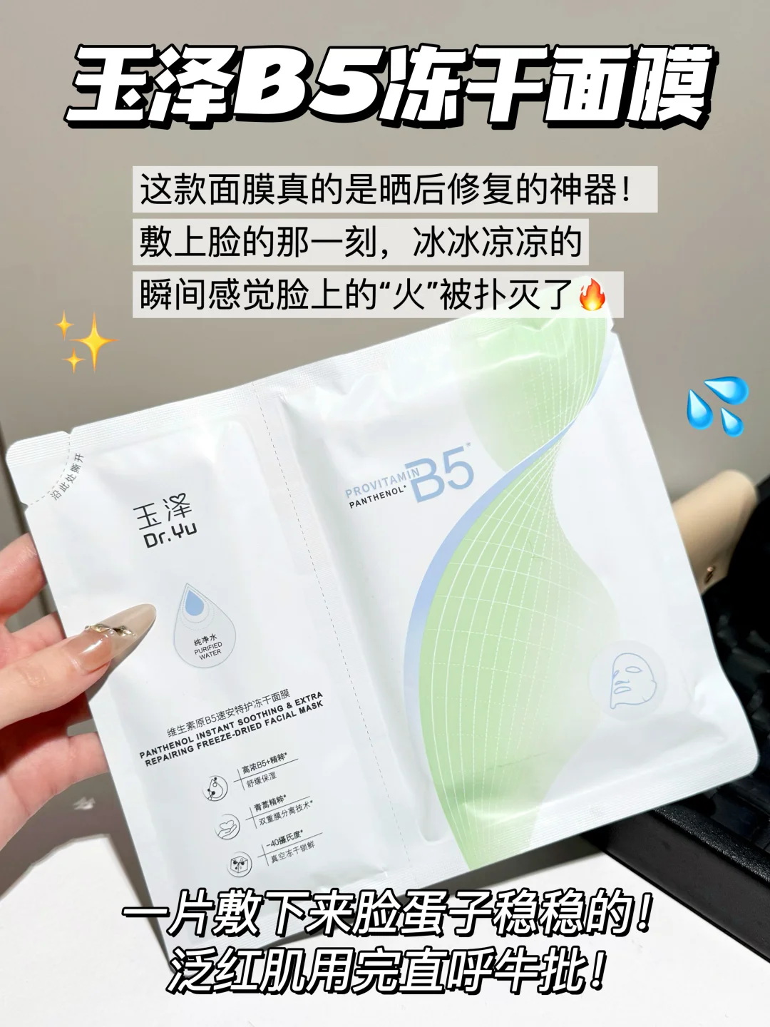 晒后急救大法!一贴就稳玉泽B5冻干面膜救我