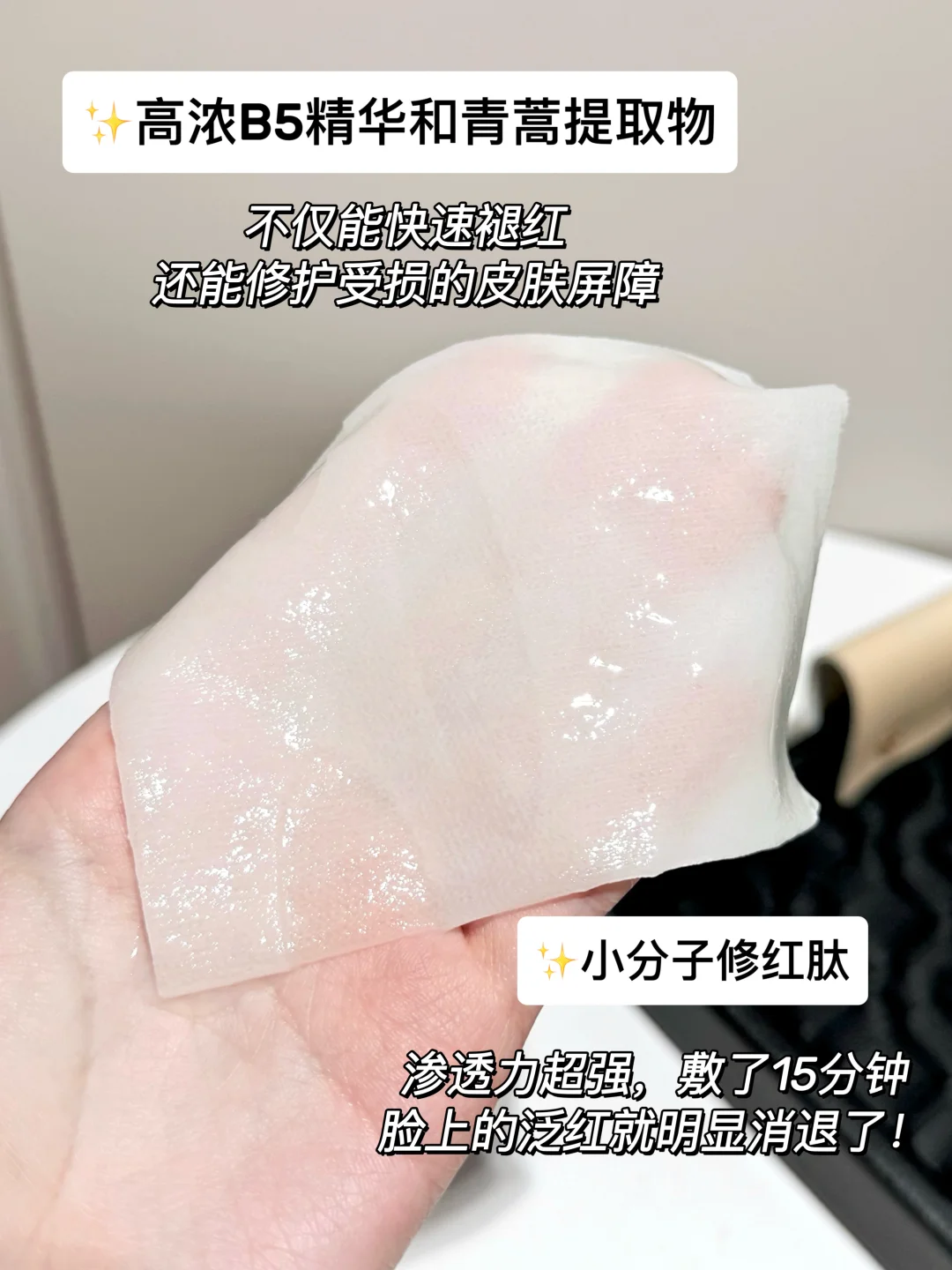 而且它里面添加了高浓B5精华和青蒿提取物