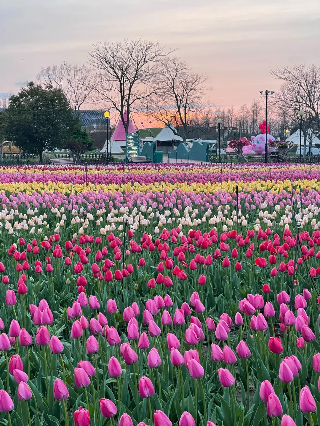 1、日岛和月岛的郁金香花田,目前开的正盛