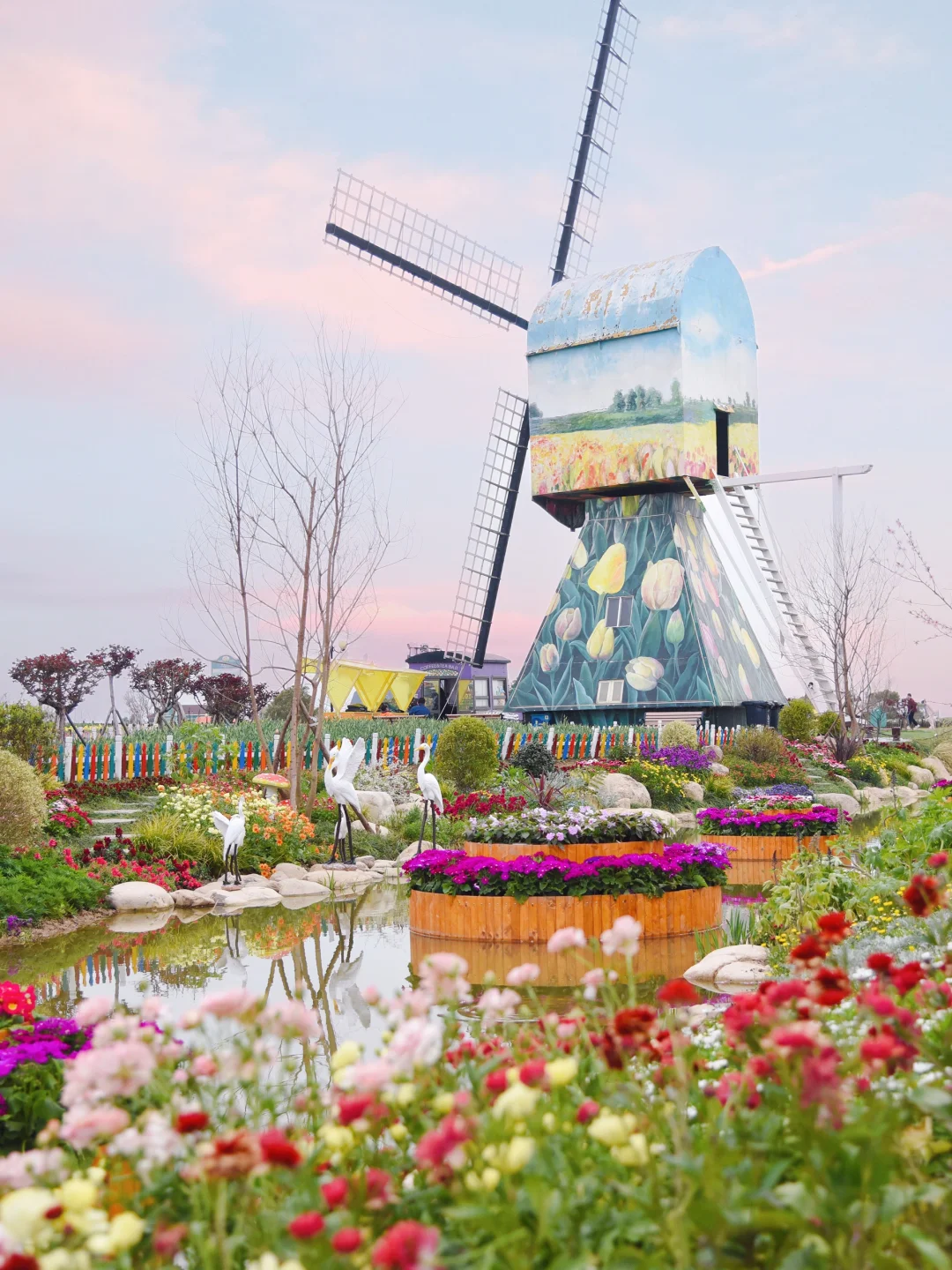 2、花海里的博物馆:将文物搬到花海里面,荷兰花海真会玩呀