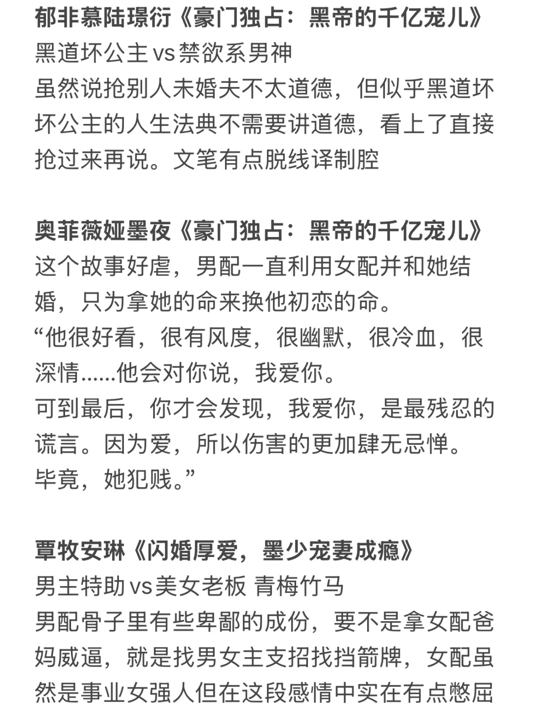这个故事好虐,男配一直利用女配并和她结婚,只为拿她的命来换他初恋的命。