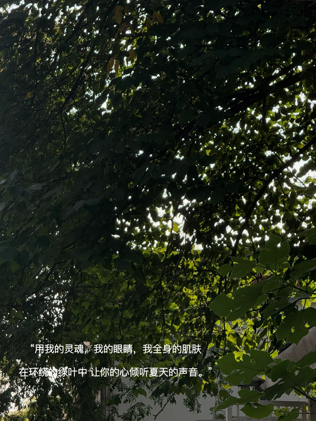 在环绕的绿叶中 让你的心倾听夏天的声音。”