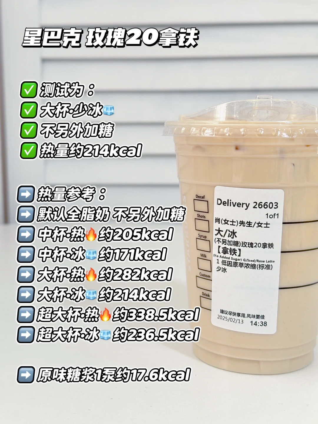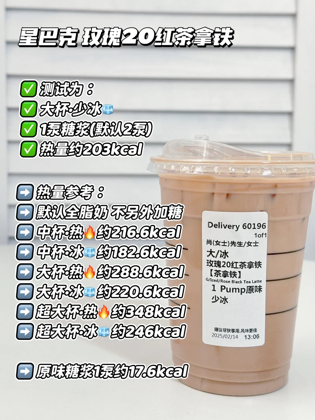 测试为:大杯·少冰🧊1层糖浆 热量约203kcal✔