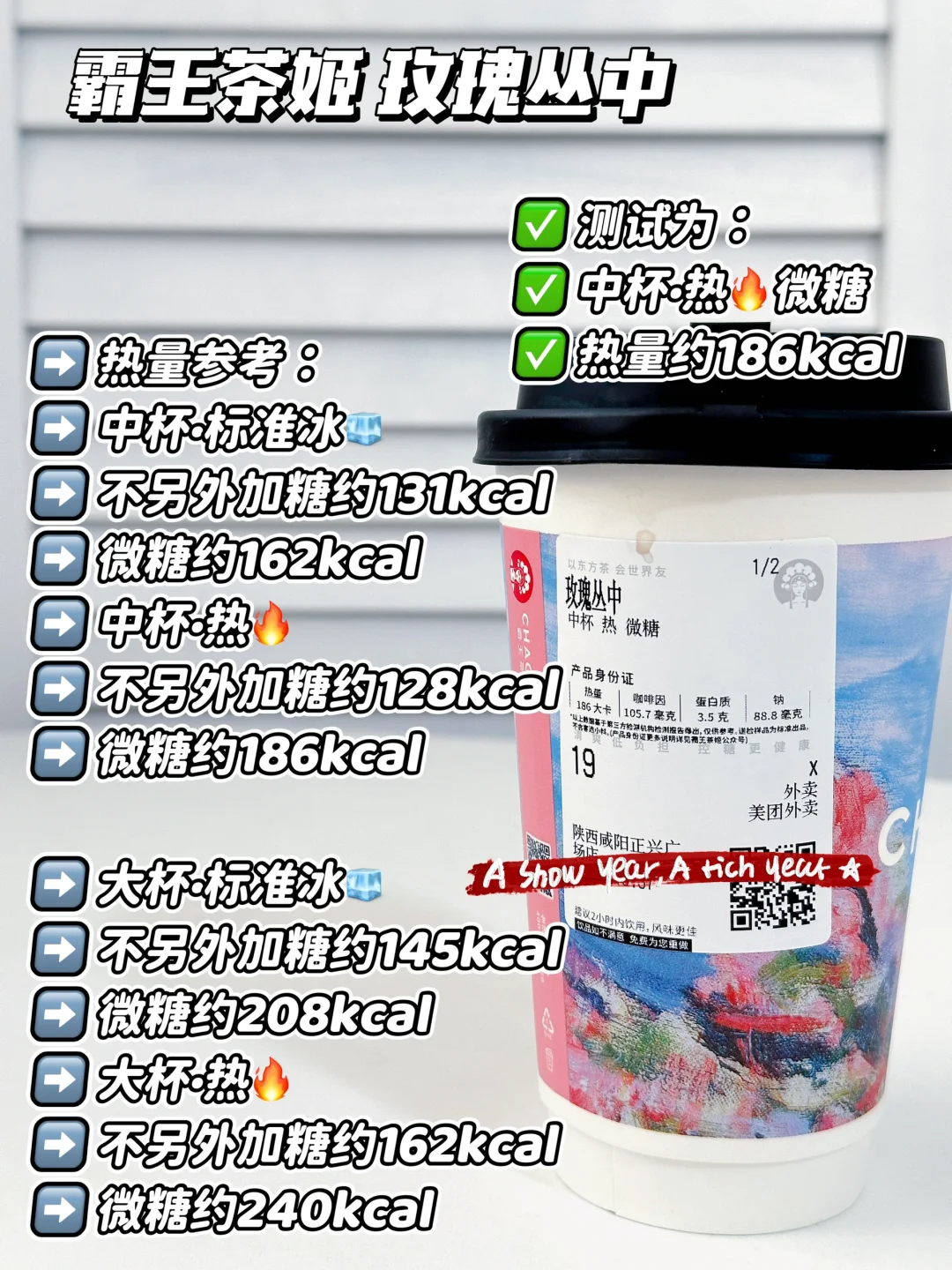 测试为:中杯·热🔥微糖 热量约186kcal✔