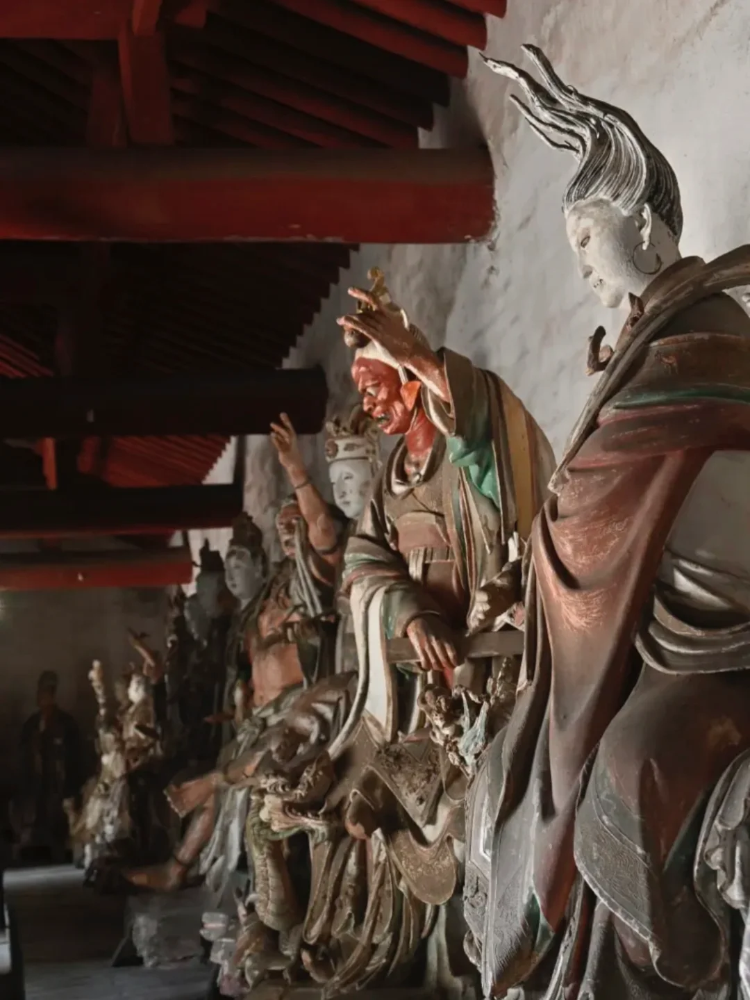 在晋东南,大小玉皇庙并不少见,而泽州府城这座却是唯一被冠以“彩塑壁画博物馆”的玉皇庙。不仅是因为在这个小小庙宇里,你可以一次性看遍宋金元明清五朝建筑,更能用300余尊精美彩塑喂饱双眼。