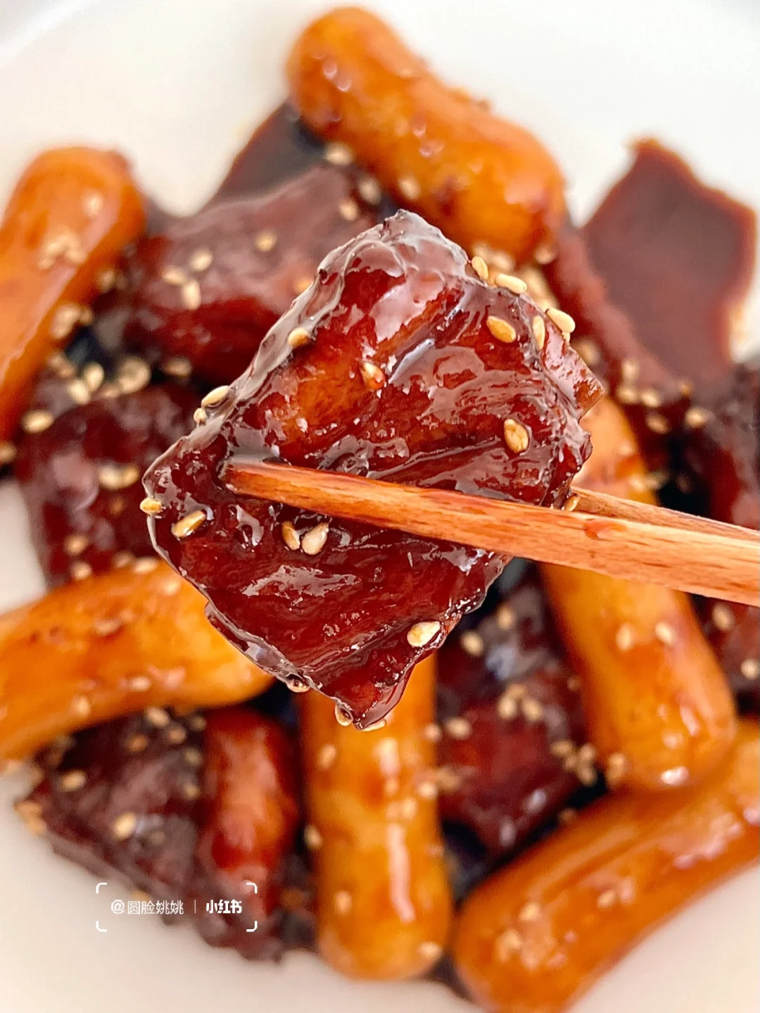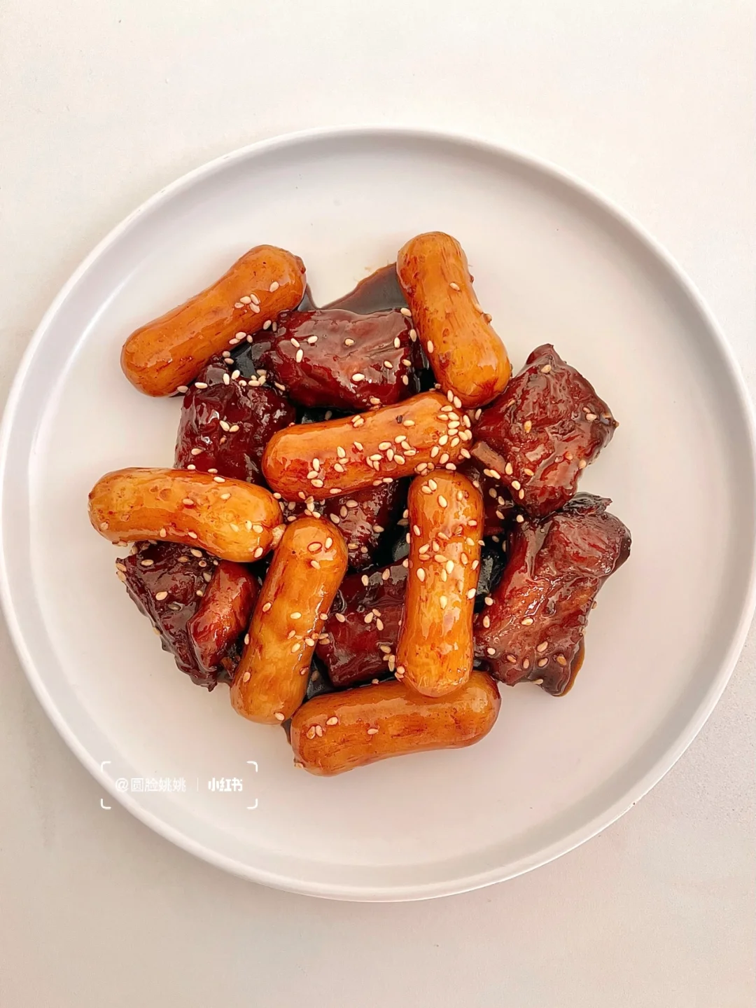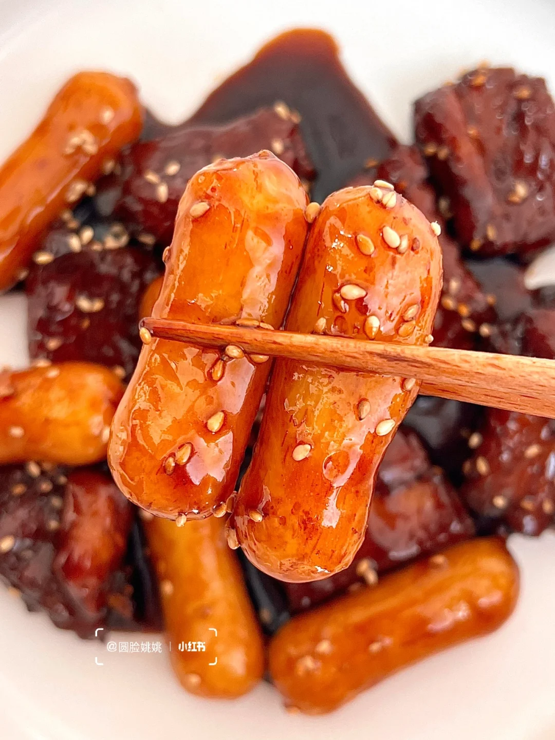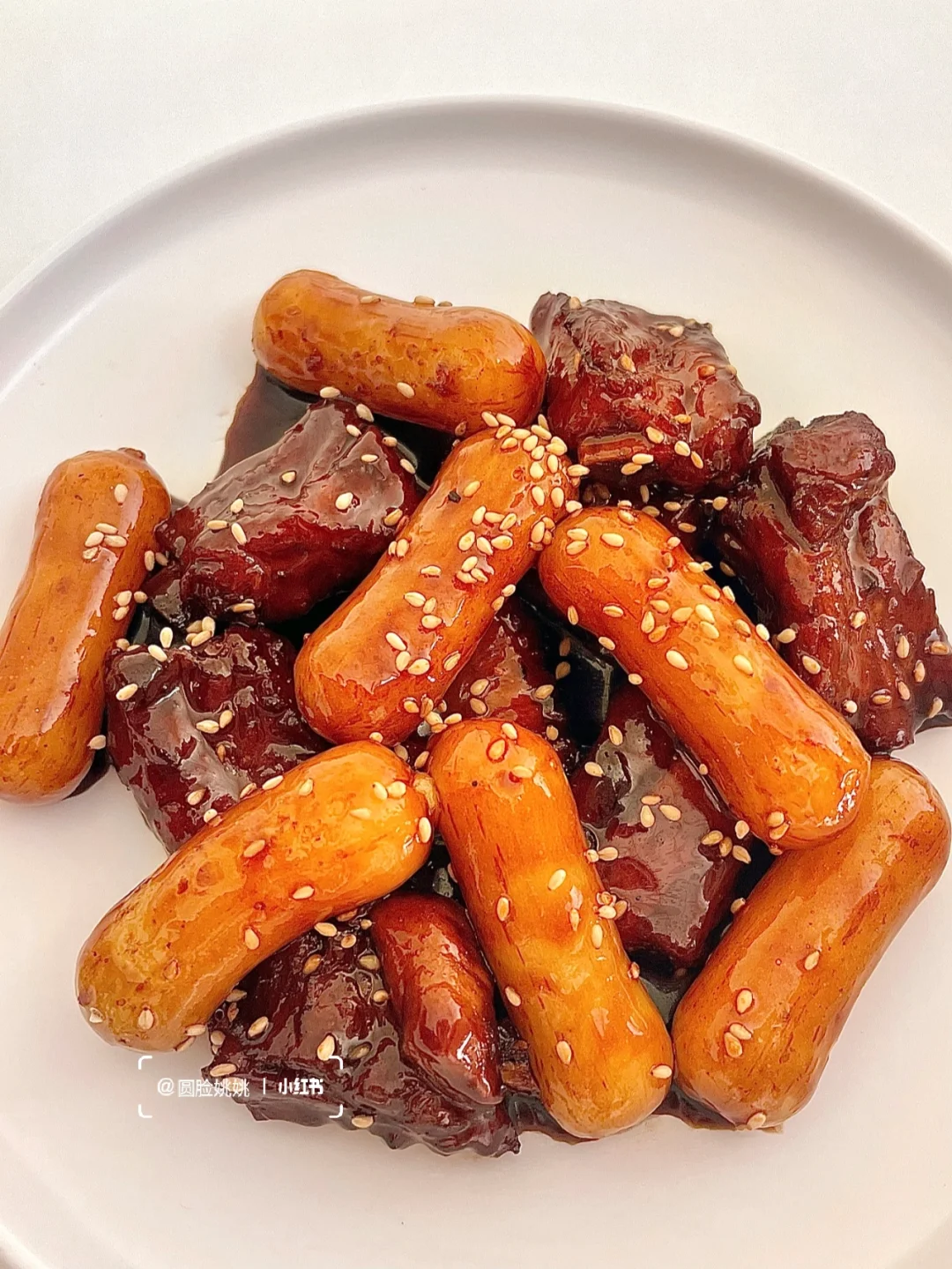 酱汁浓郁!甜蜜蜜的!用了芝士年糕炒软糯还能拉丝😭