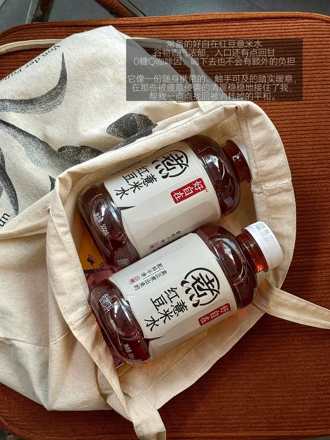 常备的好自在红豆薏米水,是真正煮出来的,开盖即饮很方便,谷物香气浓郁,入口还有点回甘,0糖0咖啡因,喝下去也不会额外有负担。它像一份随身携带的、触手可及的踏实暖意,在那些被疲惫侵袭的清晨,稳稳地接住了我,熬夜后喝一瓶养出好状态,帮我一点点找回被消耗掉的平和,养护好自己的身体。