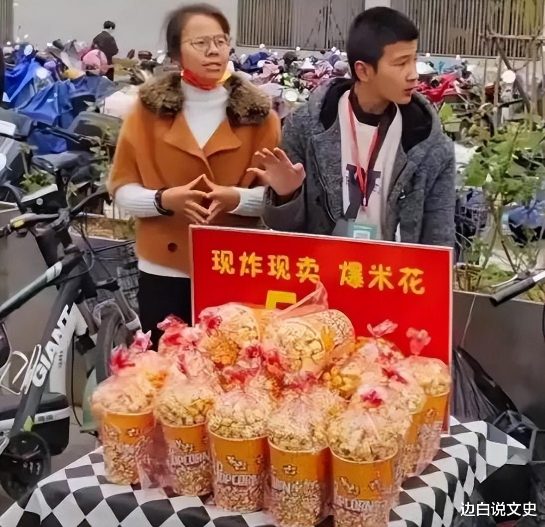 为了帮助儿子,姚传华可谓挖空了心思,自己掏钱找路人帮忙,去儿子的摊上卖爆米花。