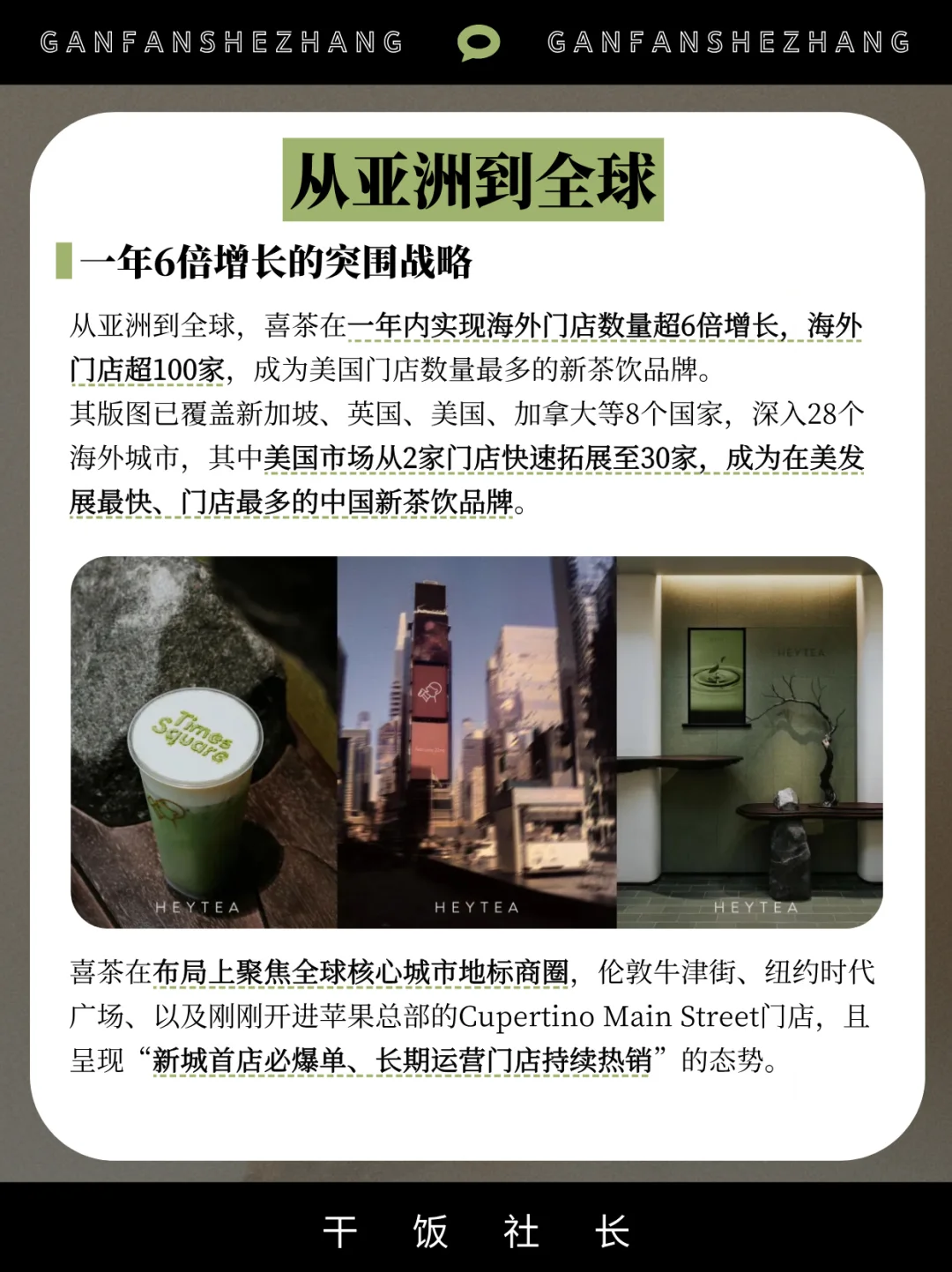 自2018年新加坡首店起航,喜茶在海外市场一路高歌猛进。以差异化战略,率先打入英国、北美等代表性消费市场。
