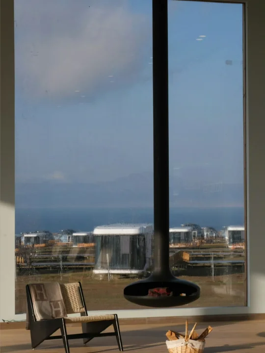 再说说房间,潮克分别是观景星空房和房车房2个房型,星空房观湖视野更好,都在前排,尤其是最外边的一排星空房,而且还可以躺着看星空,房间的空间面积挺大的,房车和星空都是38平左右。房车房虽然不和星空房在一起,但是景色也不错,因为两边的大落地窗,可以很清晰的看草地和背后的雪山。