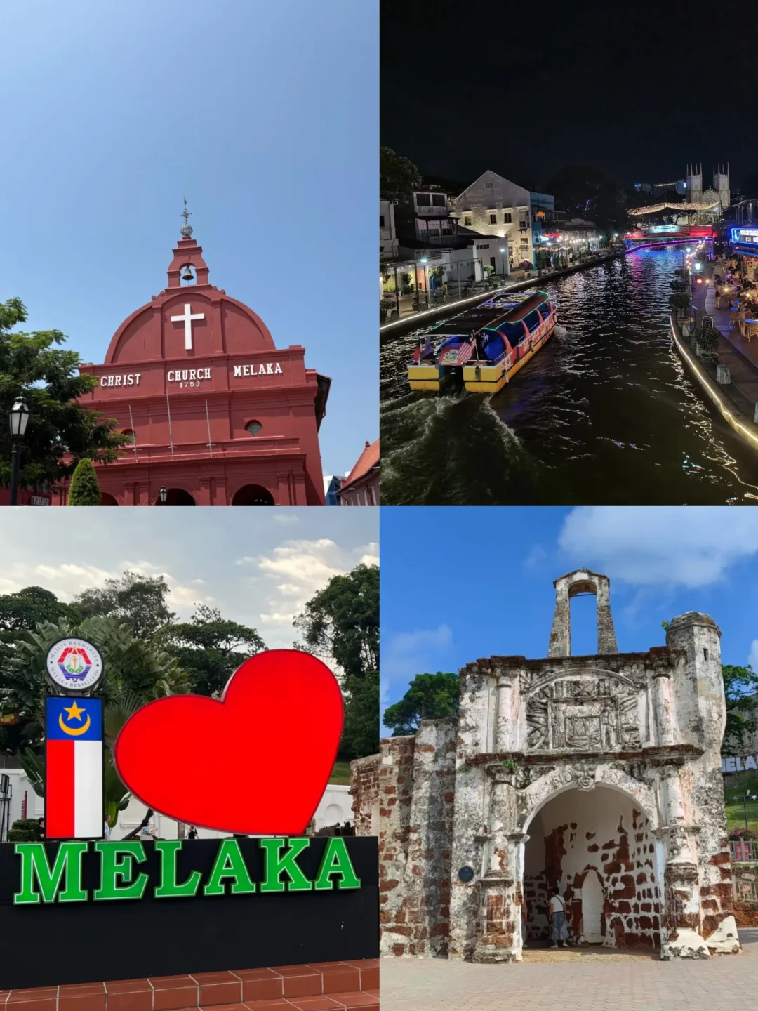 荷兰红屋——鸡场街——郑和博物馆馆——涂鸦墙——圣地亚哥古城门——旋转塔——清真寺——马六甲海峡沿岸