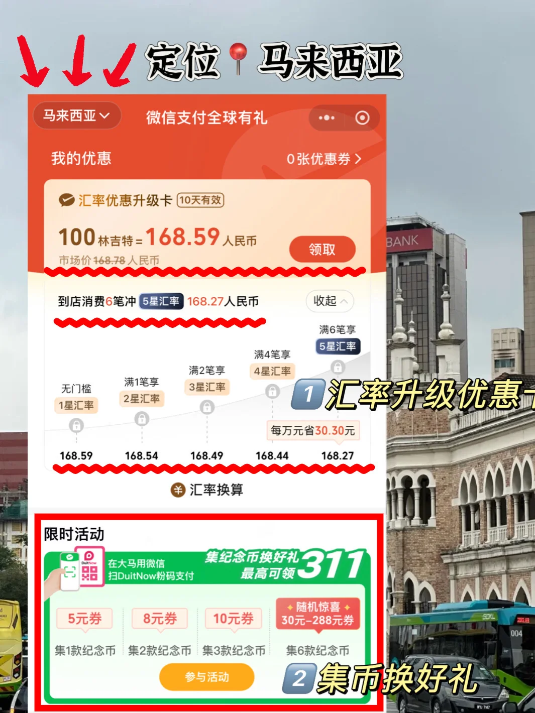 微信🔍【微信支付全球有礼】小🍊序,定位📍马来西亚领汇率升级卡,花得越多汇率越优,比换现金省得多,付款还超方便。