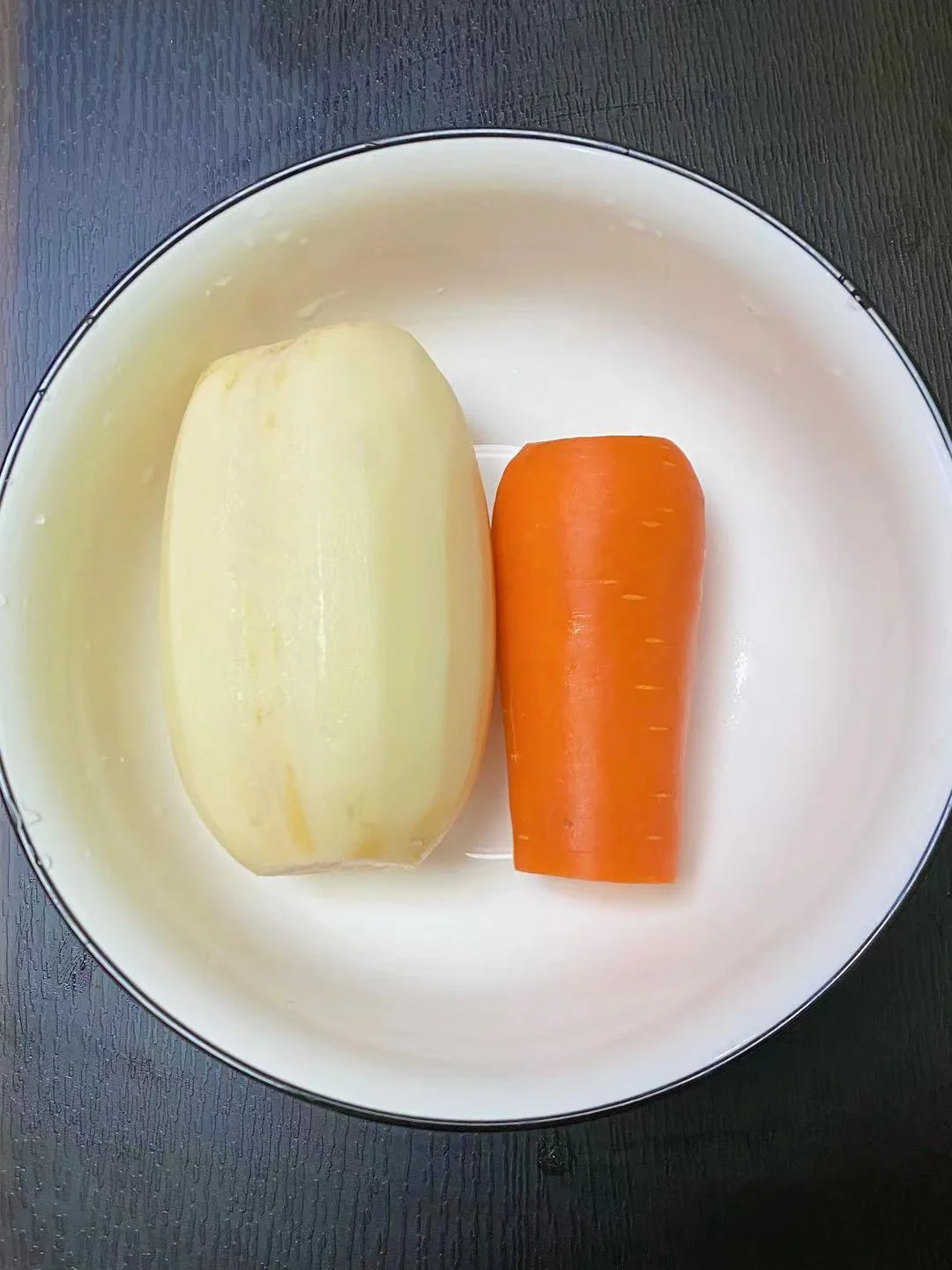 2、鲜藕去皮切片,胡萝卜,辣椒切片。一起开水锅中1分钟捞起清水洗净装碗