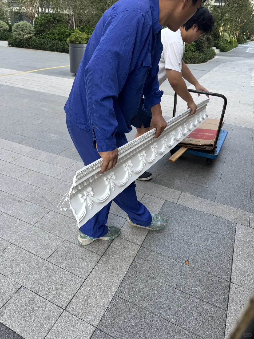 一大早赶到工地来卸货石膏线,终于见到了心心念念的蝴蝶结线条!从车上搬下来时被她美得挪不开眼,疯狂拍拍拍[失望R]