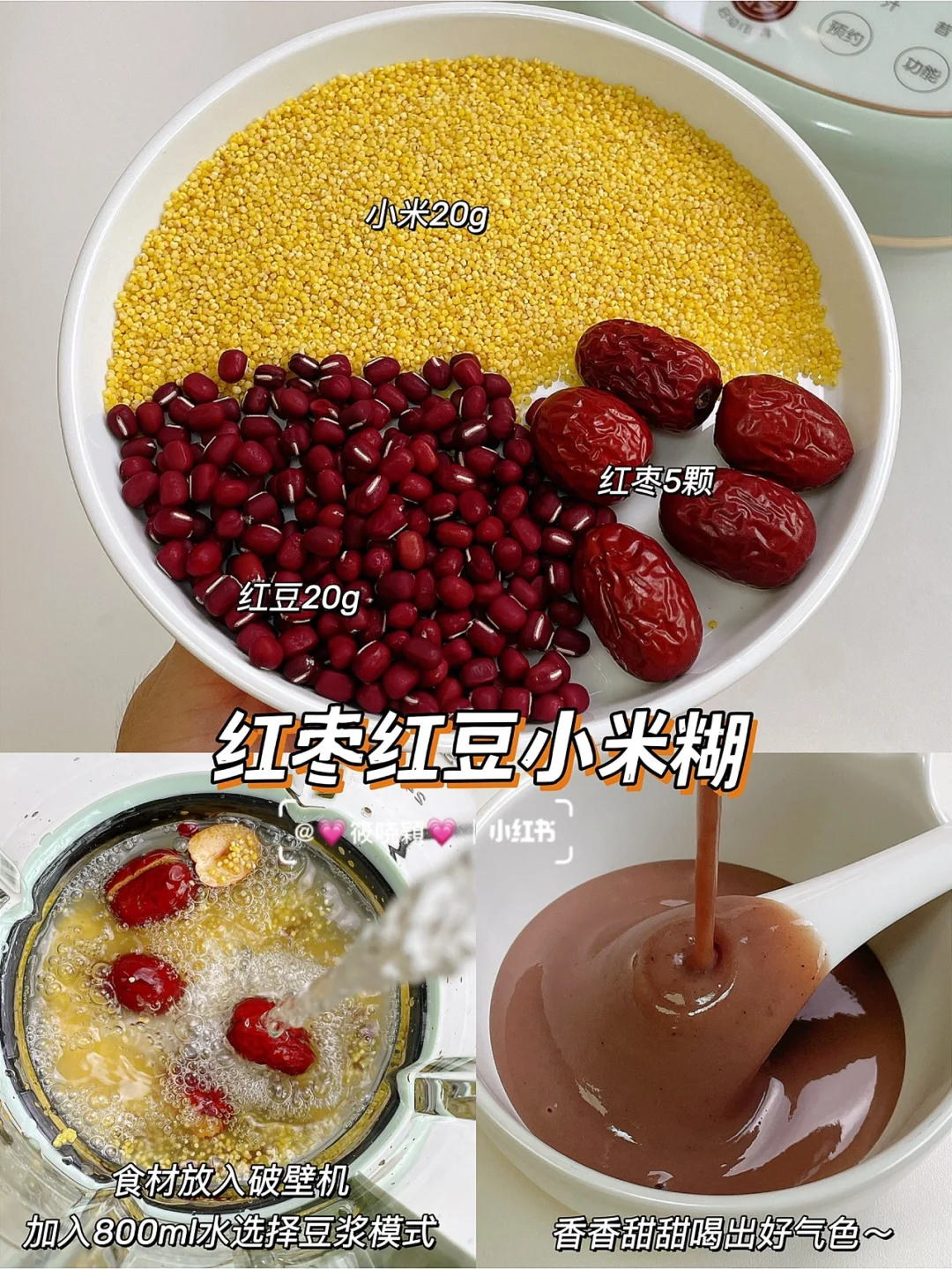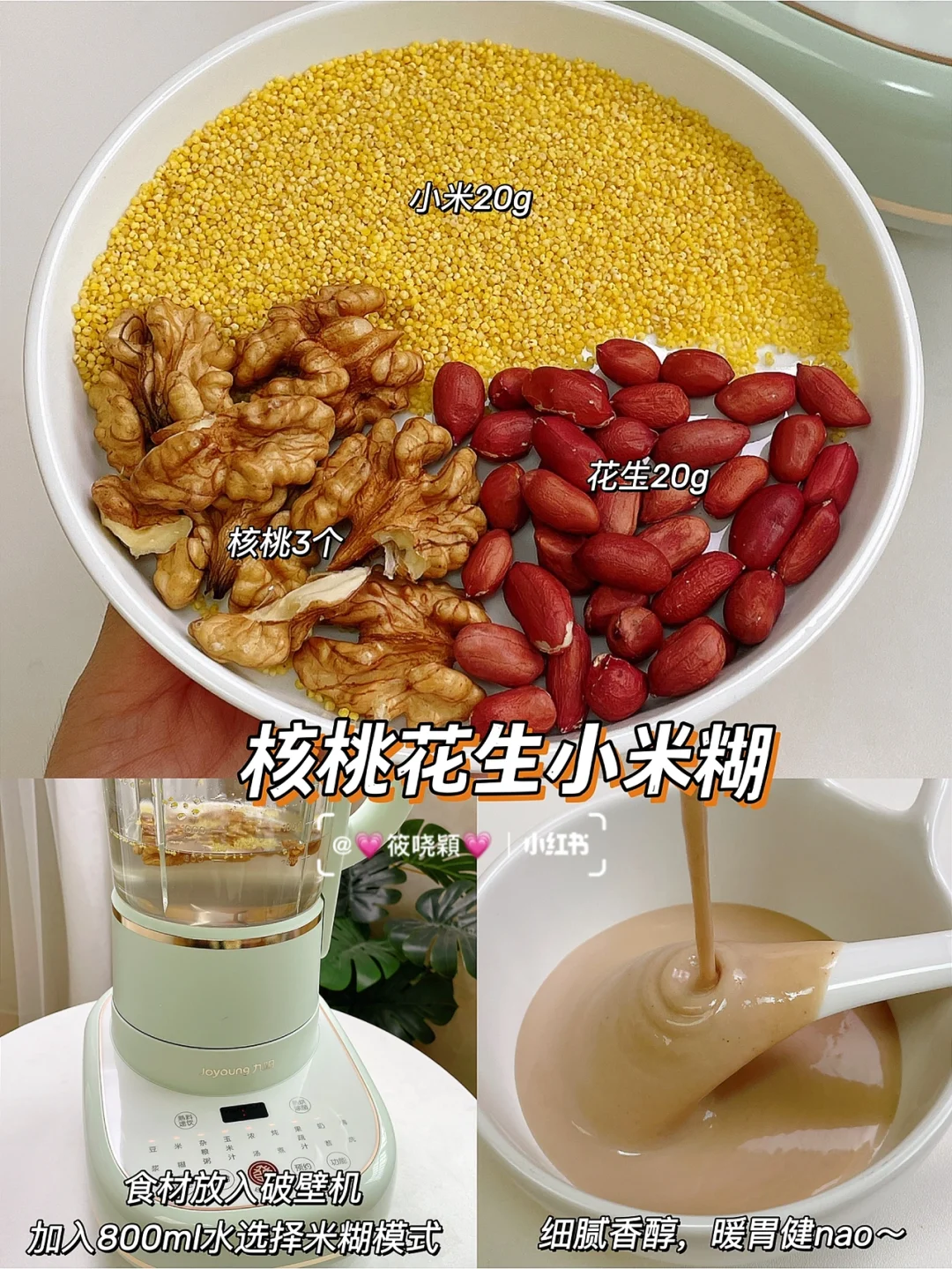 🌈食材洗净放入破壁机,加800ml清水破壁机米糊/豆浆模式即可~(这是2-3人的量)