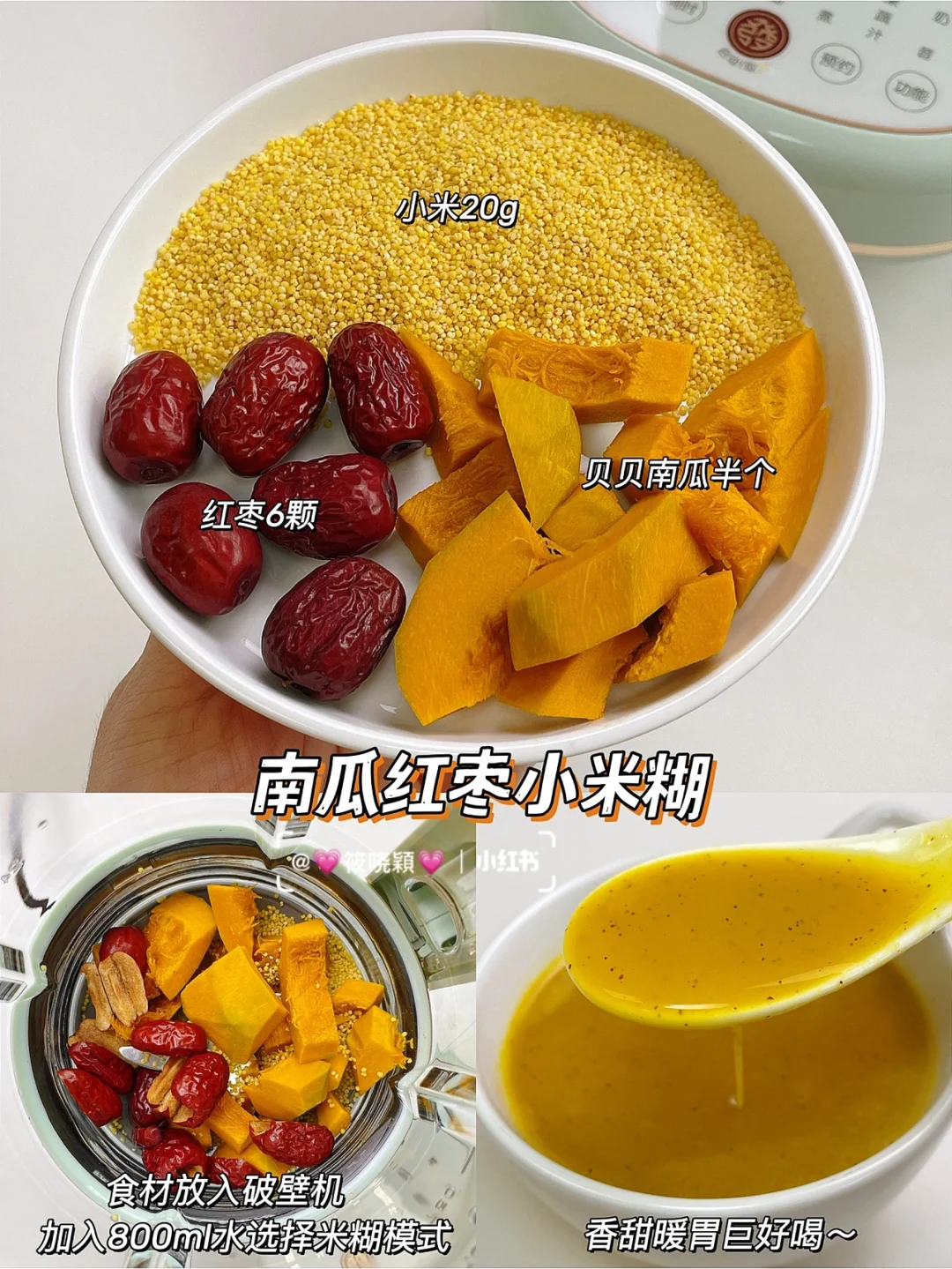 【贝贝南瓜半个、红枣6颗、小米20g】
