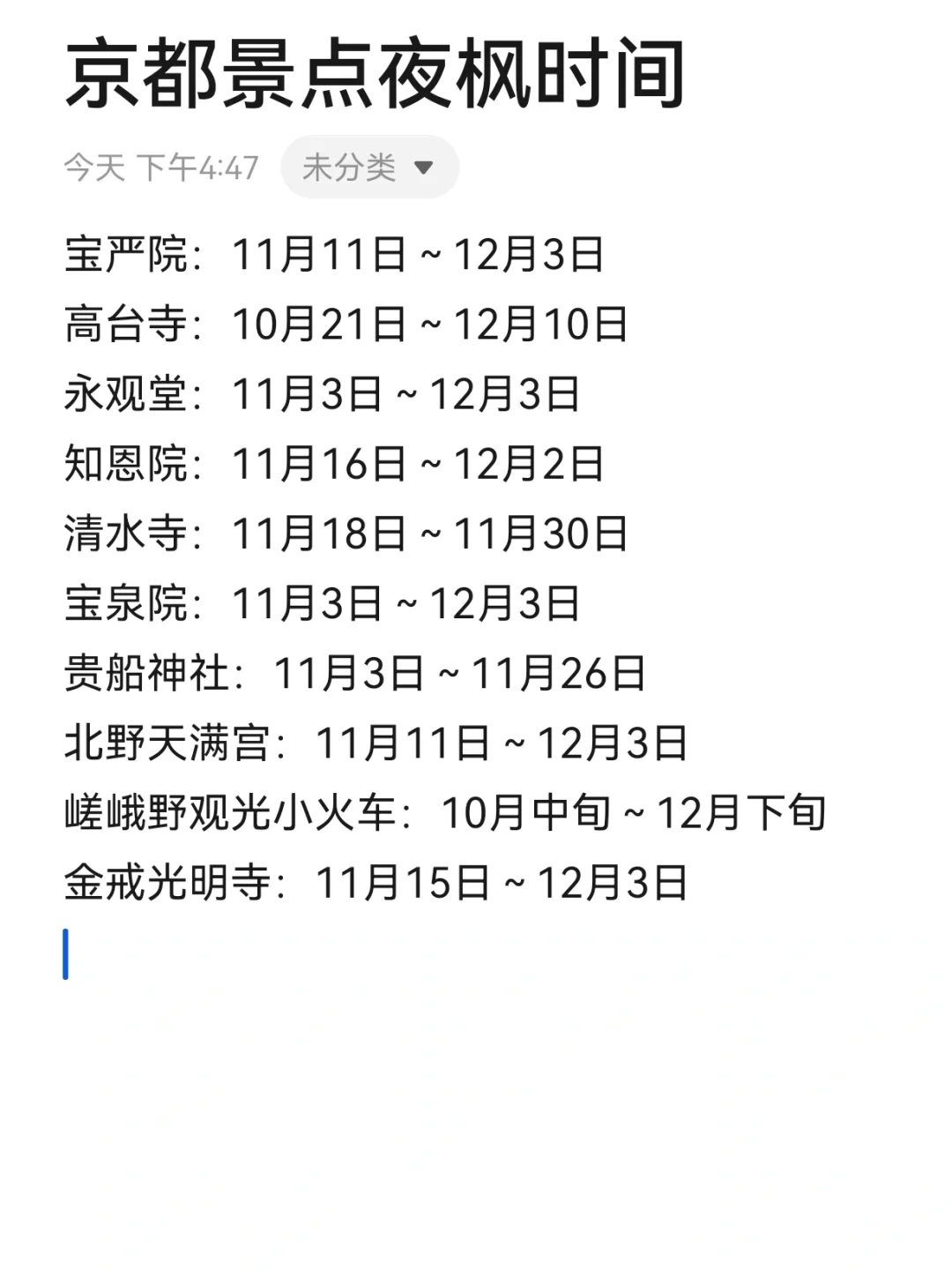 🌈京都夜枫开放时间及寺庙