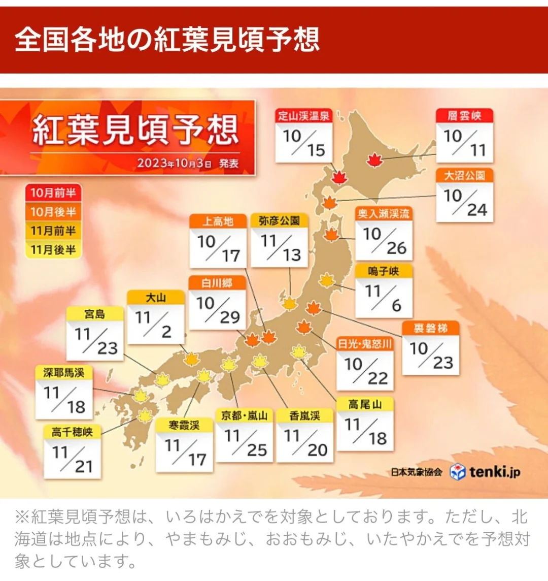 🌈日本赏枫叶时间: