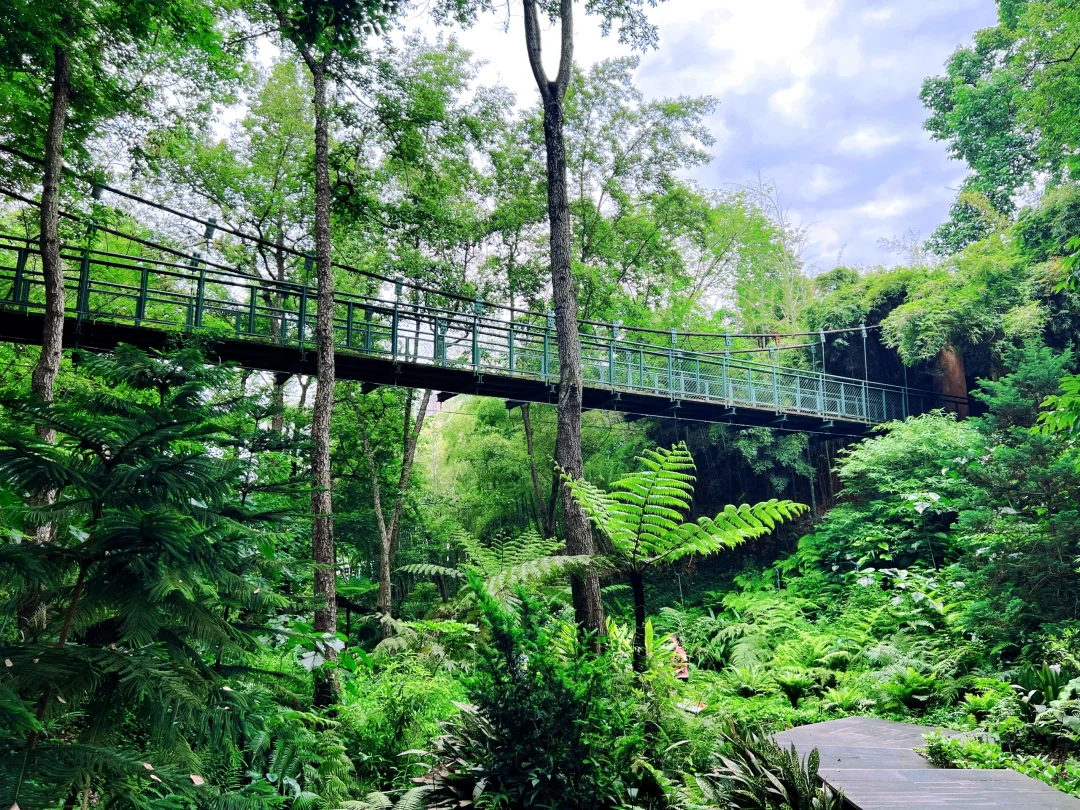 ✅超级推荐珍稀植物园,西大门进门右手边下去就到了。一进去就仿佛进入了原始森林,绿野仙踪既视感,森林吊桥,拍照超级出片,还可以看见松鼠🐿️!这里有侏罗纪时期的桫椤古树🌲国家二级近危保护植物,还有各种蕨类植物🍃🌱🌱🍃