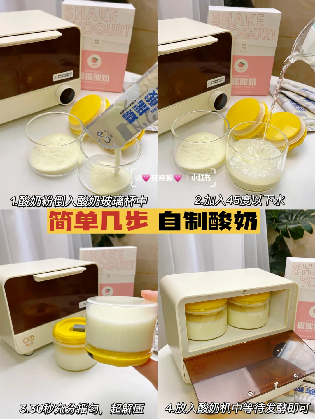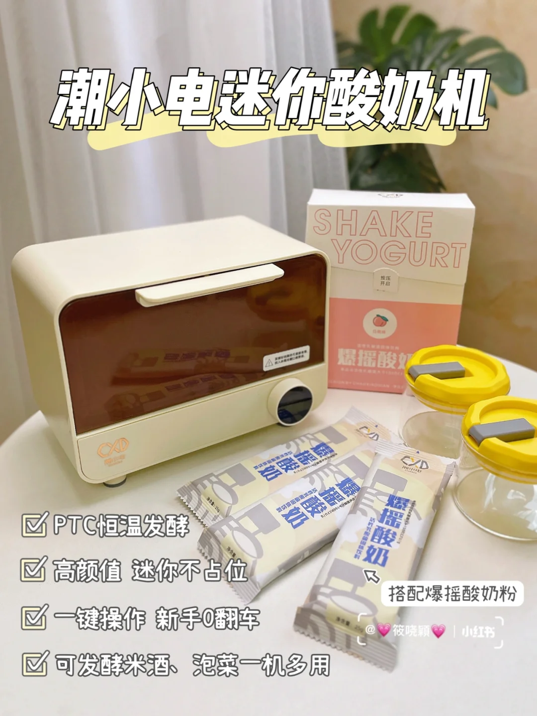 这个潮小电Mini酸奶机,不仅颜值高,真的是好吃又好玩,把搭配的爆摇酸奶粉放入酸奶杯中,加入45度以下的水,爆摇30秒至粉完全溶解,放入酸奶机等待发酵就行了,非常简单100%发酵成功,我家一姐经常跟我一起制作,让孩子参与其中,真的超有成就感的~