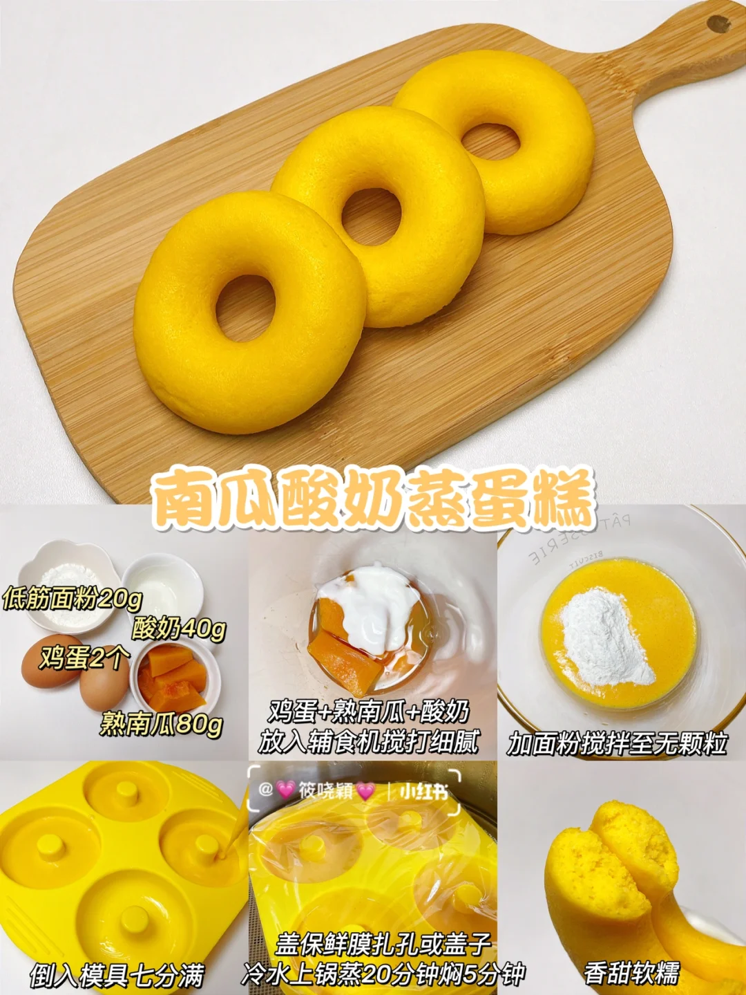 🔸食材:鸡蛋2个,熟南瓜80g,酸奶40g,低筋面粉20g