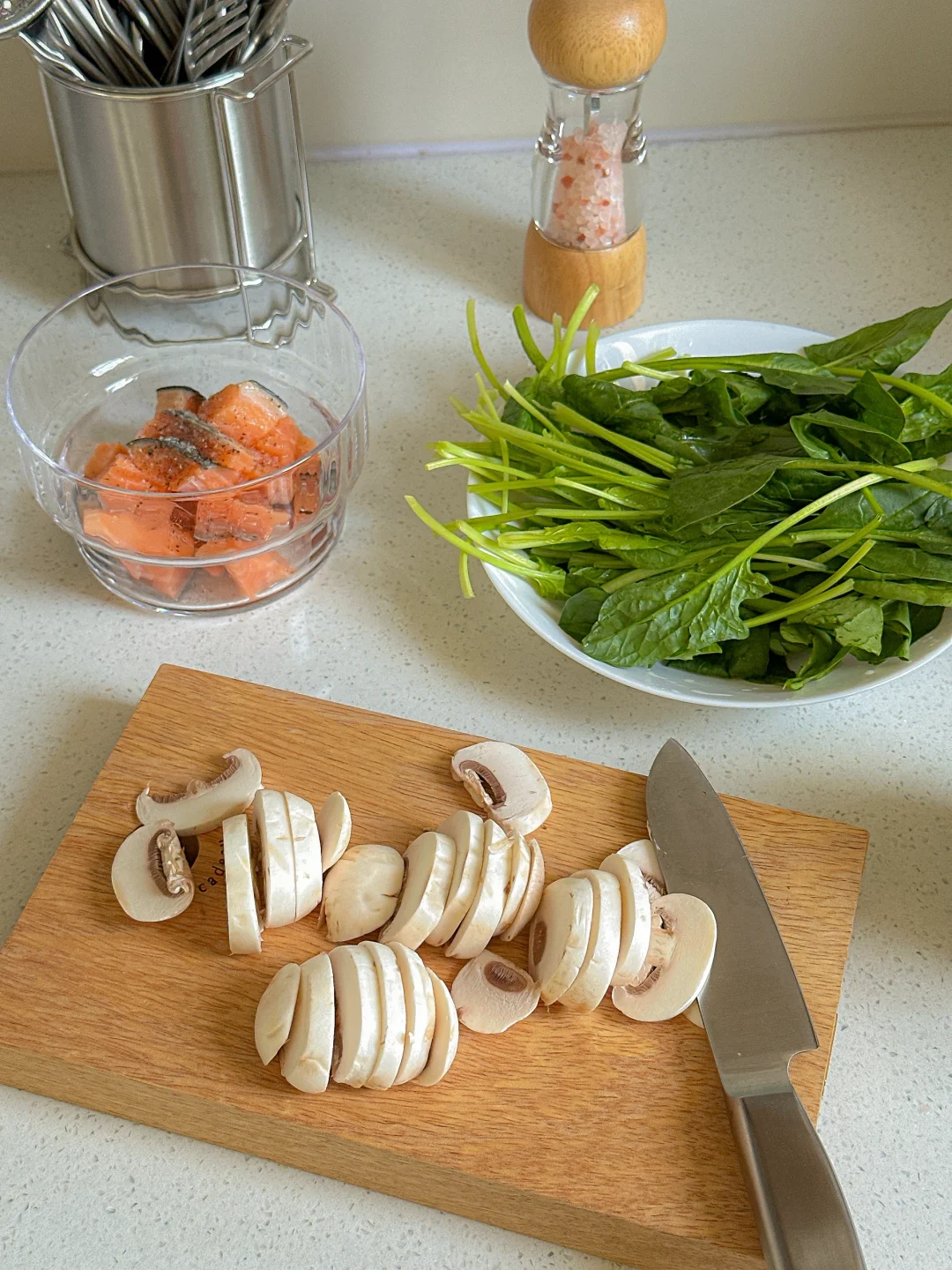 和菌菇的鲜美~好吃到跺脚啊 啊啊!焦香的三文鱼🍣外脆里嫩,还能吃到洋葱🧅甜甜的口感!
