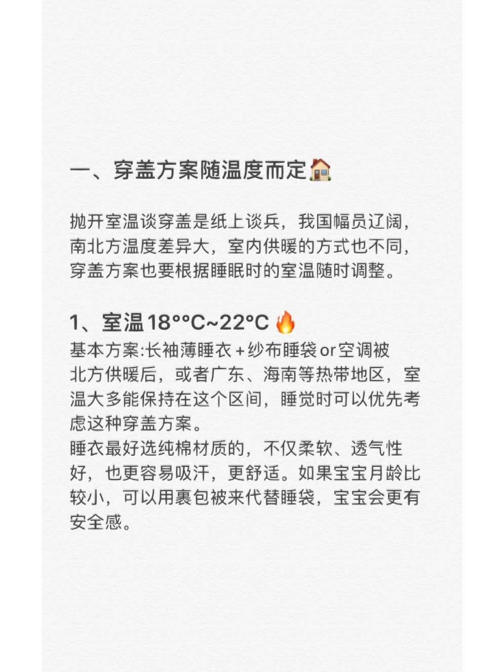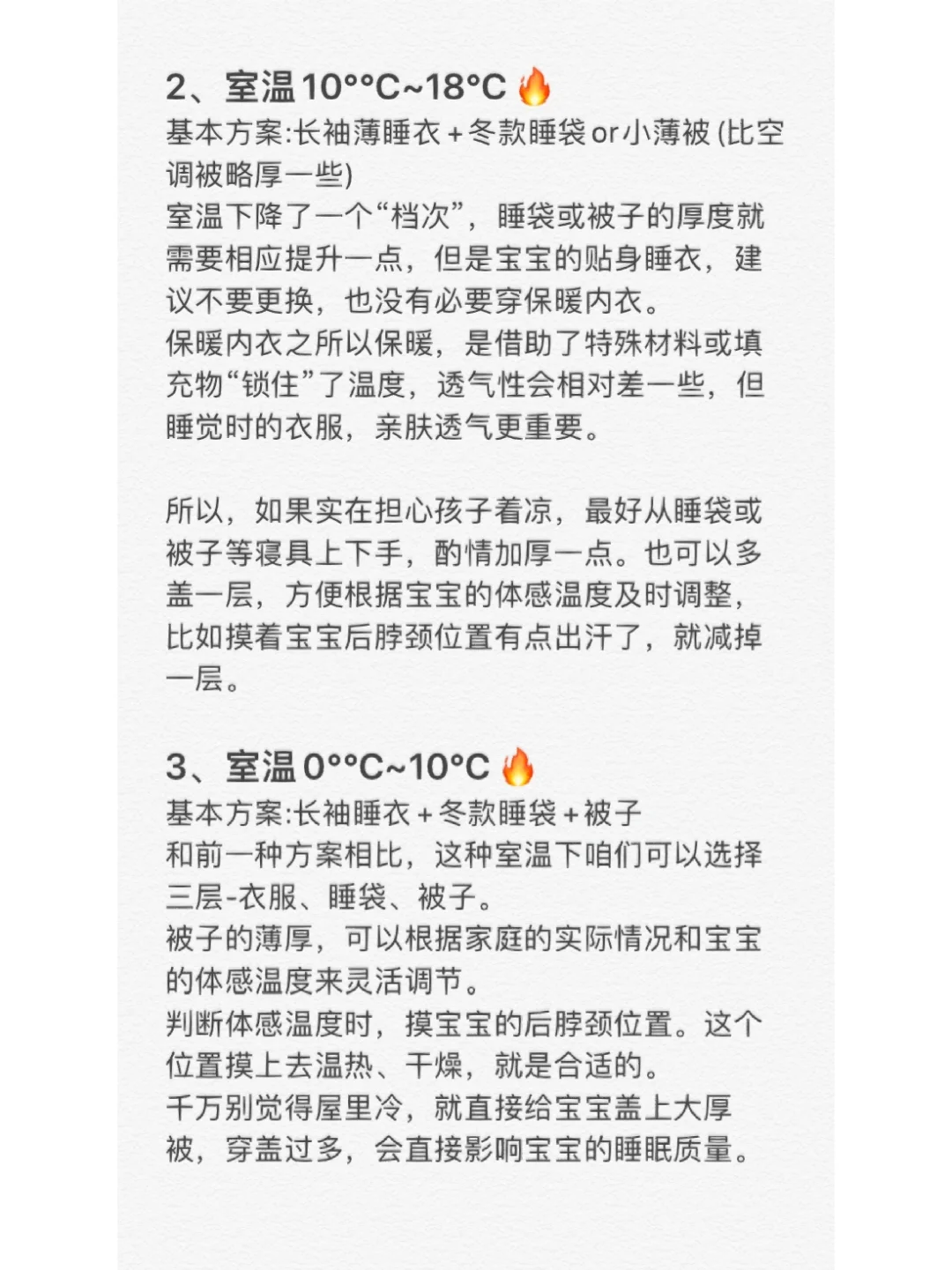 室温下降了一个“档次”,睡袋或被子的厚度就需要相应提升一点,但是宝宝的贴身睡衣,建议不要更换,也没有必要穿保暖内衣。