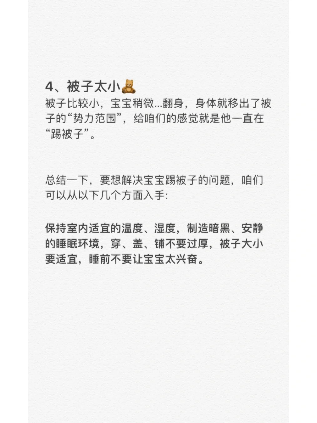 至于为啥被子在宝宝身上待不住,试试从下面4个方向找原因吧。