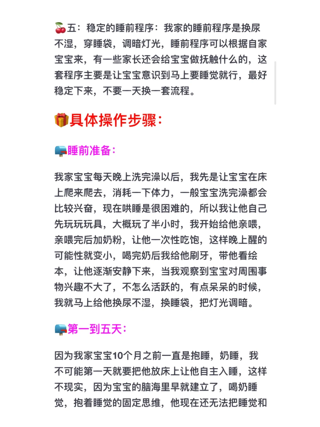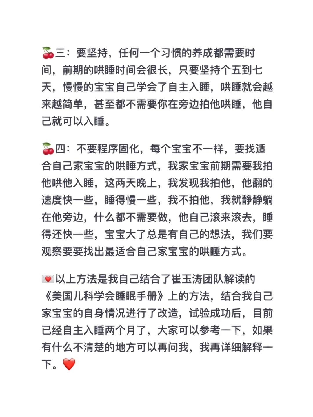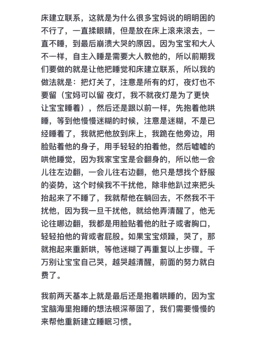 自从看到崔玉涛老师解读的美国儿科学会睡眠手册中培养宝宝自主入睡的方法,我就下定决心开始培养自主入睡,我在崔老师解读的方法的基础上进行了改良,整个过程差不多是10天,从开始的比较艰难,到后面的越来越顺畅,到最后完全习惯了自主入睡,成功的时候,我都激动的要哭了,我一定要把这个方法安利给所有和我一样辛苦哄睡的宝妈们‼️‼️‼️