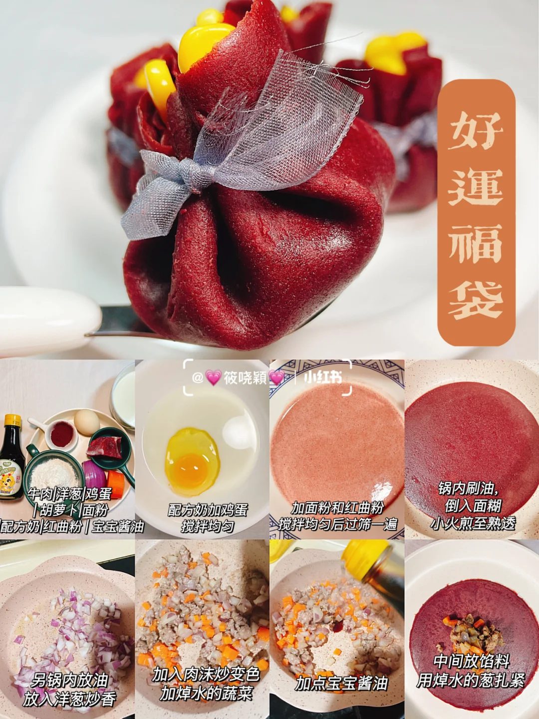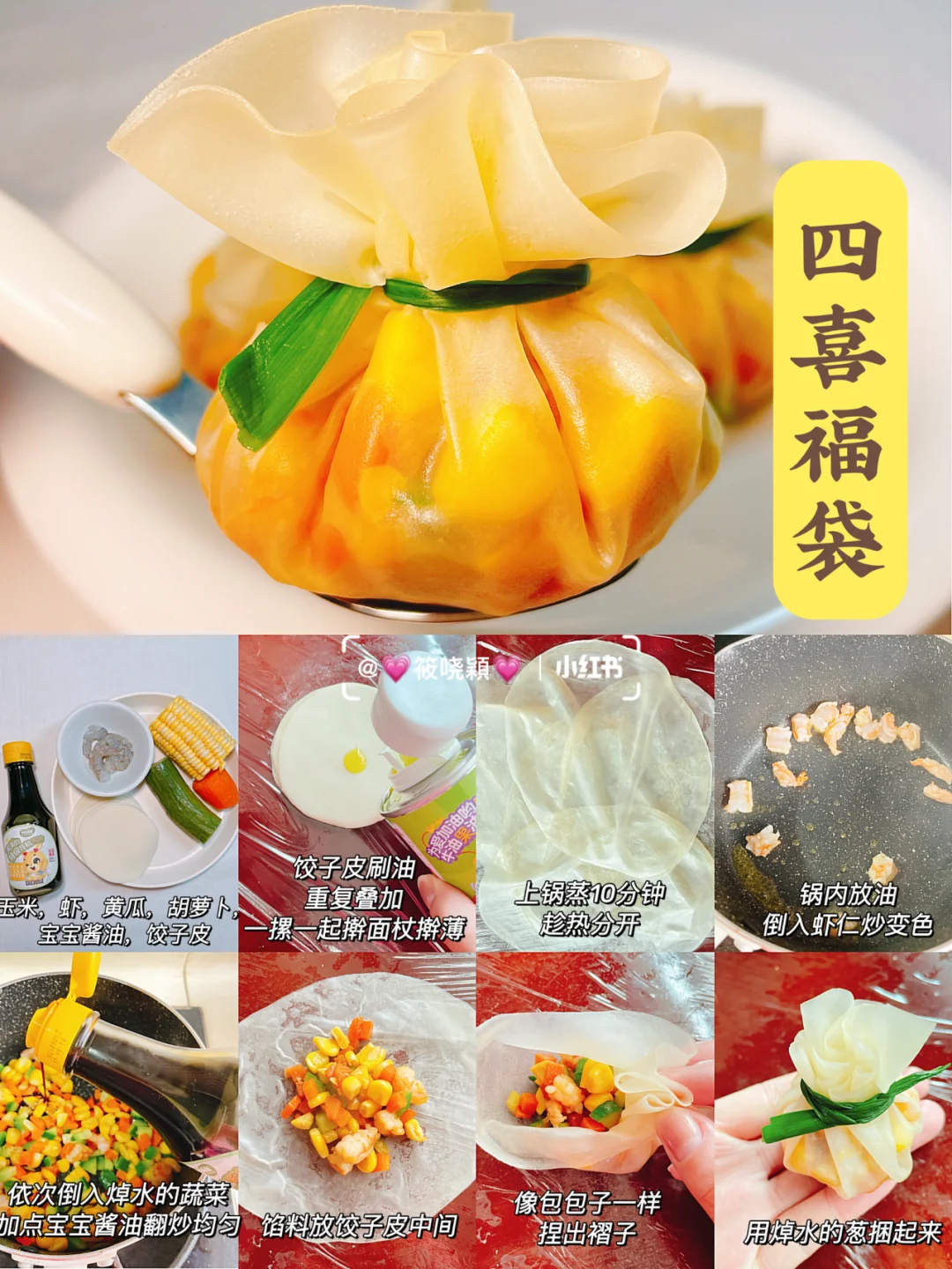离春节越来越近,宝宝的创意菜也得安排上啦,今天分享几款花样福袋的做法,寓意好,颜值高,过年吃出好彩头~